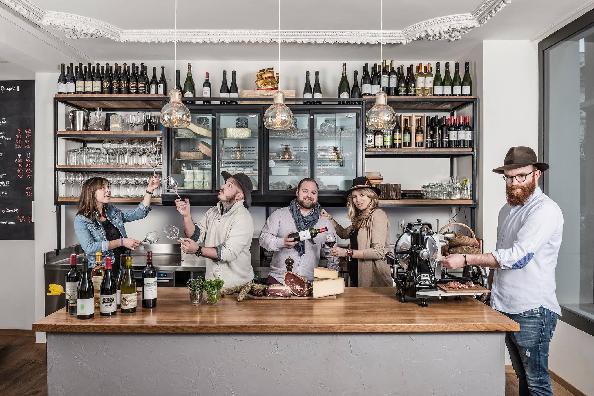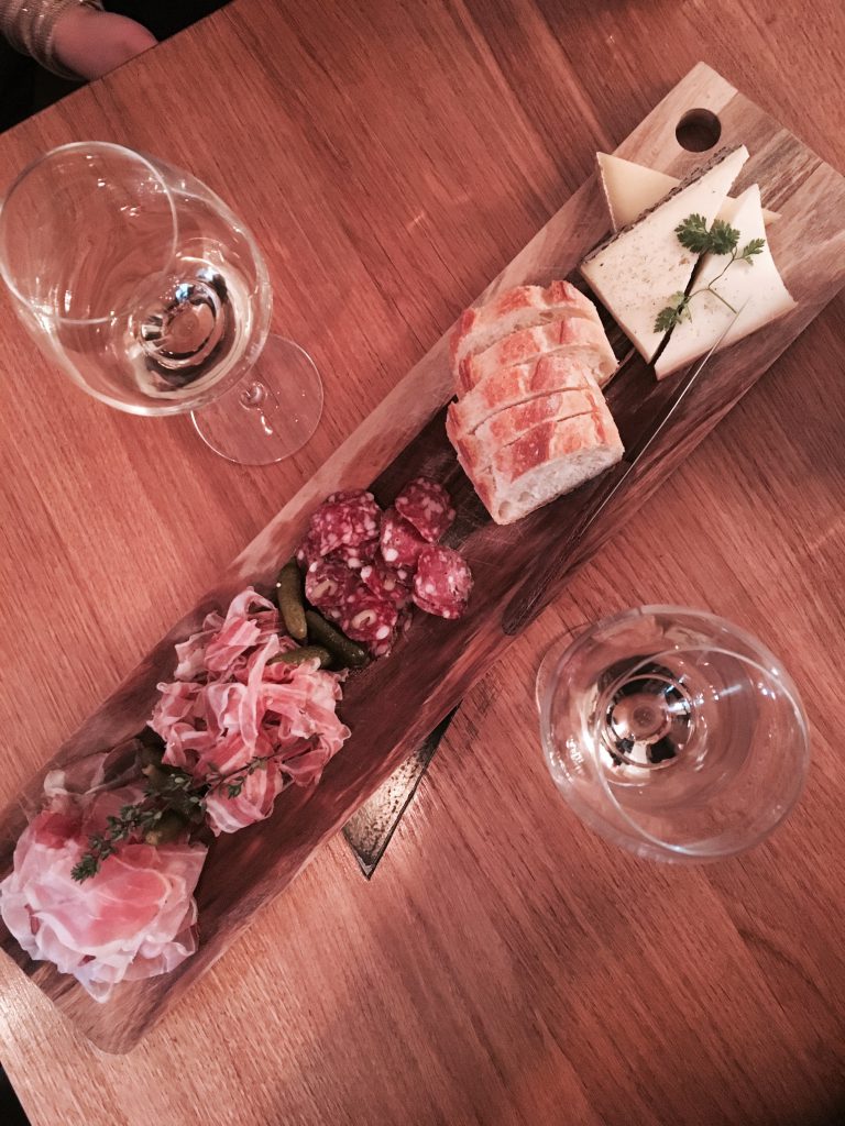 Ici, pareil que chez Al Sacco, le menu est écrit à la craie sur un fond en ardoise et la spécialité, comme le nom peut peut-être le laisser sous-entendre, c’est le vin! Une fois de plus, le personnel se montre très disponible pour tout renseignement ou pour une petite dégustation avant de faire son choix. Et je vous conseille les planchettes apéros, elles sont copieuses et la qualité de la viande et du fromage valent amplement l’écart au régime.