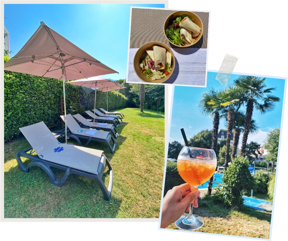 Le petit cabanon de la piscine propose de bons petits plats, boissons, cocktails, snacks et glaces et le tout dans la bonne humeur!