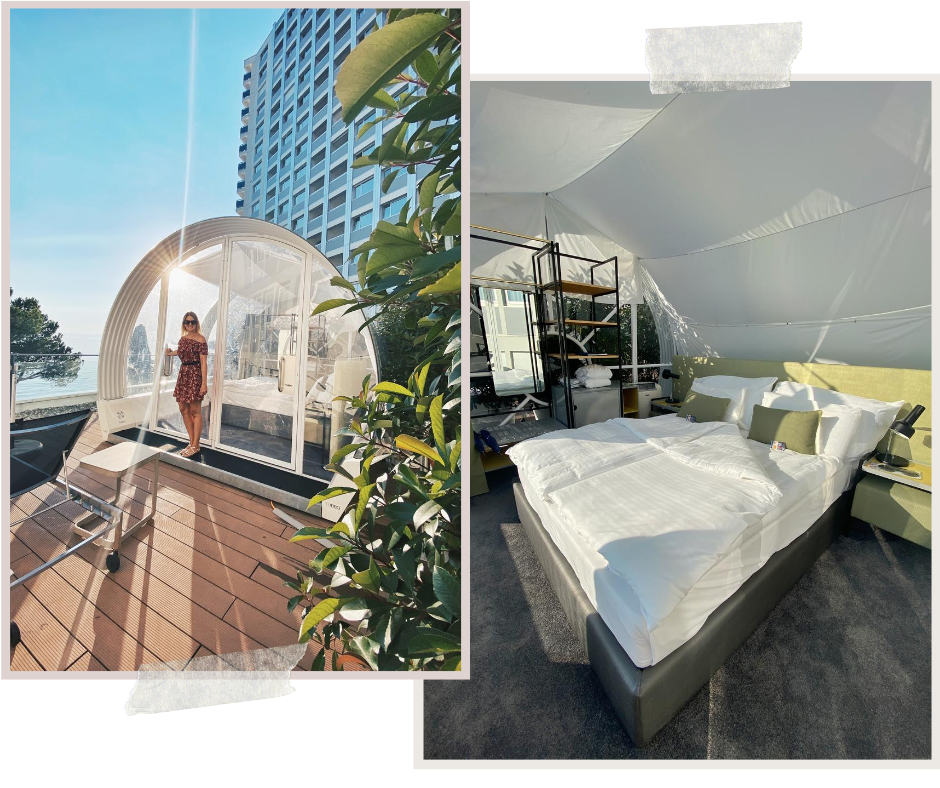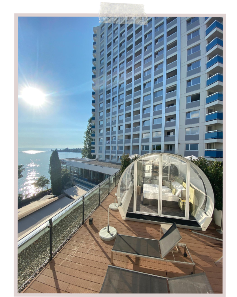 J’avais cet hôtel mythique de Montreux en face de chez moi durant 7 ans, je suis passée devant des centaines de fois sans m’y arrêter alors que cette fois j’allais y passer la nuit et pas dans n’importe quelle chambre, dans une bulle (oui, encore!).