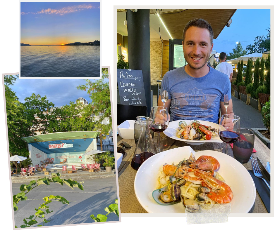 Comment ne pas profiter du magnifique bord du lac par si belle soirée d’été! Nous avons pris un verre sur le Deck de la Rouvenaz et sommes allés ensuite manger dans mon restaurant italien favoris à Montreux: Le Parc!