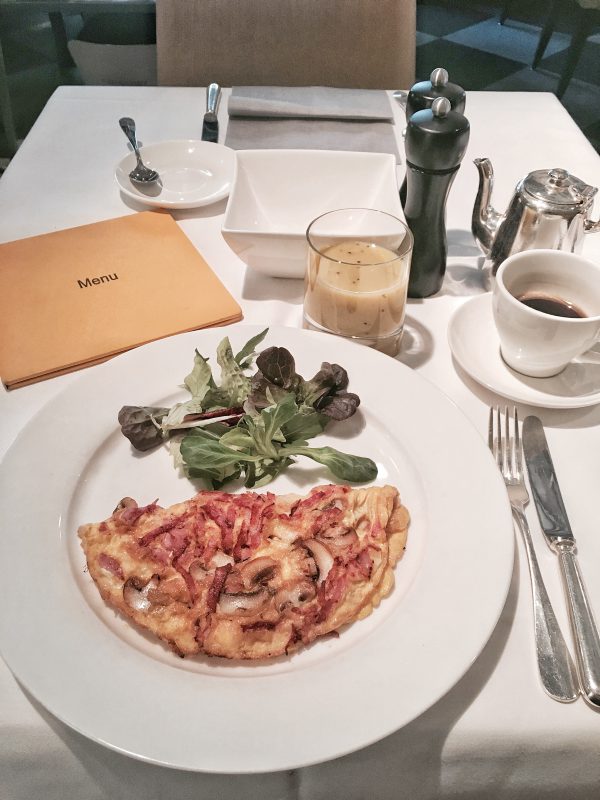 J’ai profité du buffet pour me servir une petite assiette de pain et de fruits. J’ai apprécié le fait qu’il y ait des smoothies et du jus d’orange pressé. Trop souvent les hôtels servent de banal jus en berlingot, perso je trouve ça infecte.
