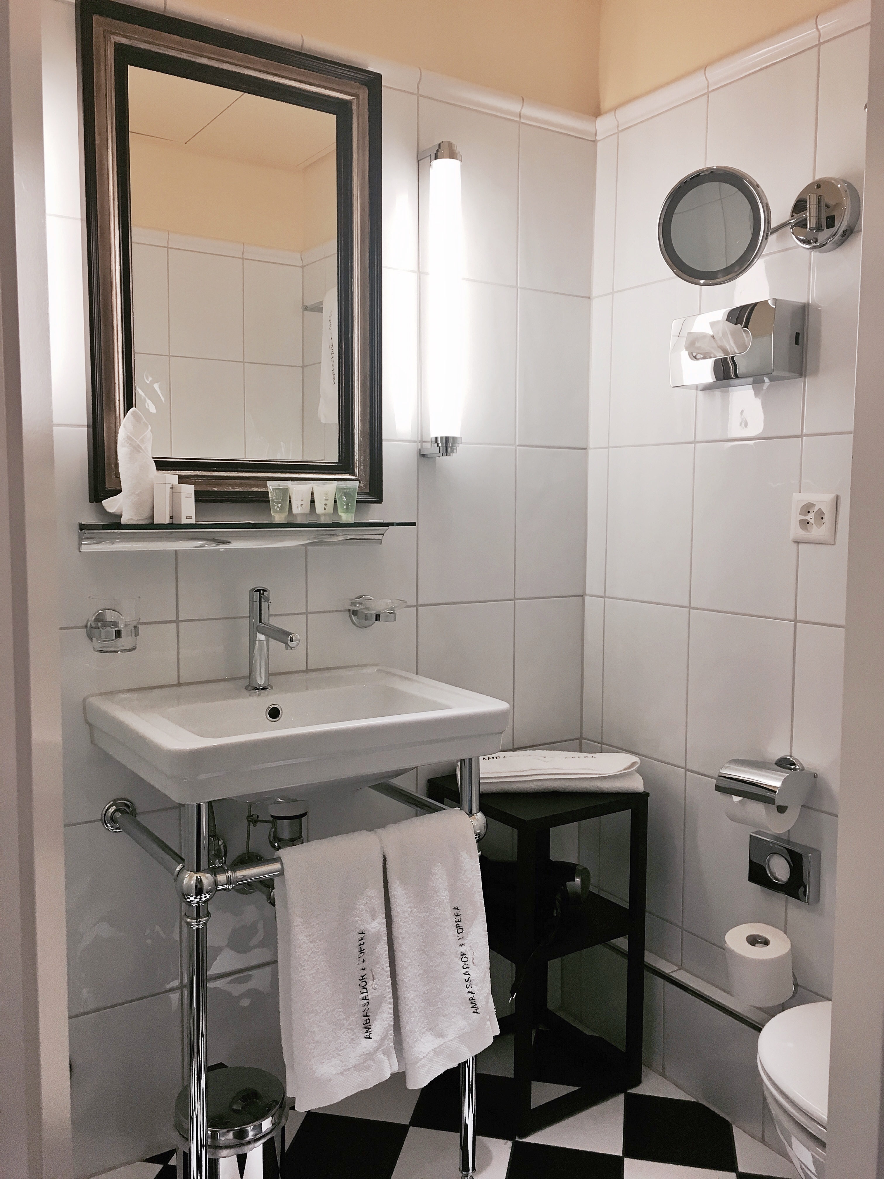 Ma chambre étant au dernier étage de l’établissement, j’ai pu jouir d’une vue plongeante sur le quartier et l’opéra. J’aurais pu rester des heures à regarder les gens et les voitures passer comme je le faisais quand j’habitais en dessus de la gare à Montreux il y a quelques années.