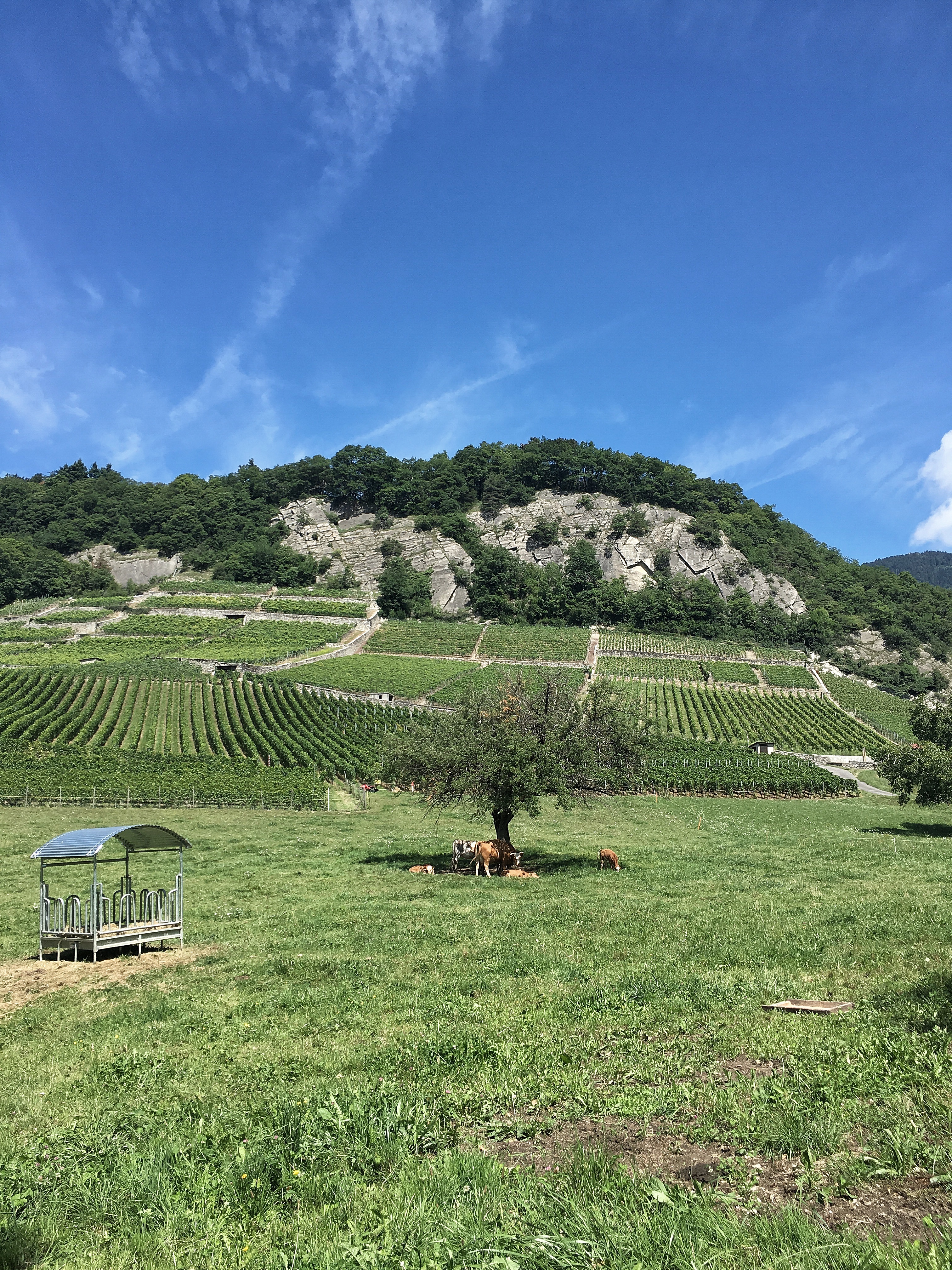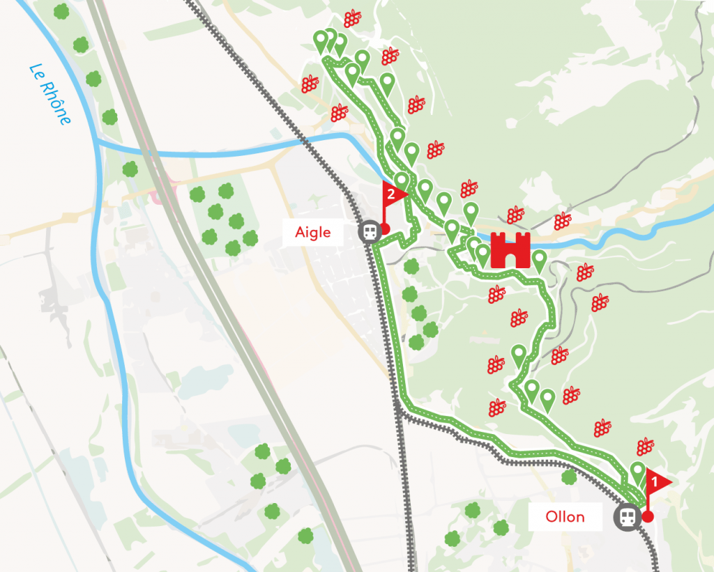En suivant attentivement les directions données sur nos téléphones, nous traversons le village d’Ollon pour ensuite gentiment arriver au milieu des vignes direction Aigle. Nous prenons le temps d’apprécier le décor et la tranquilité.