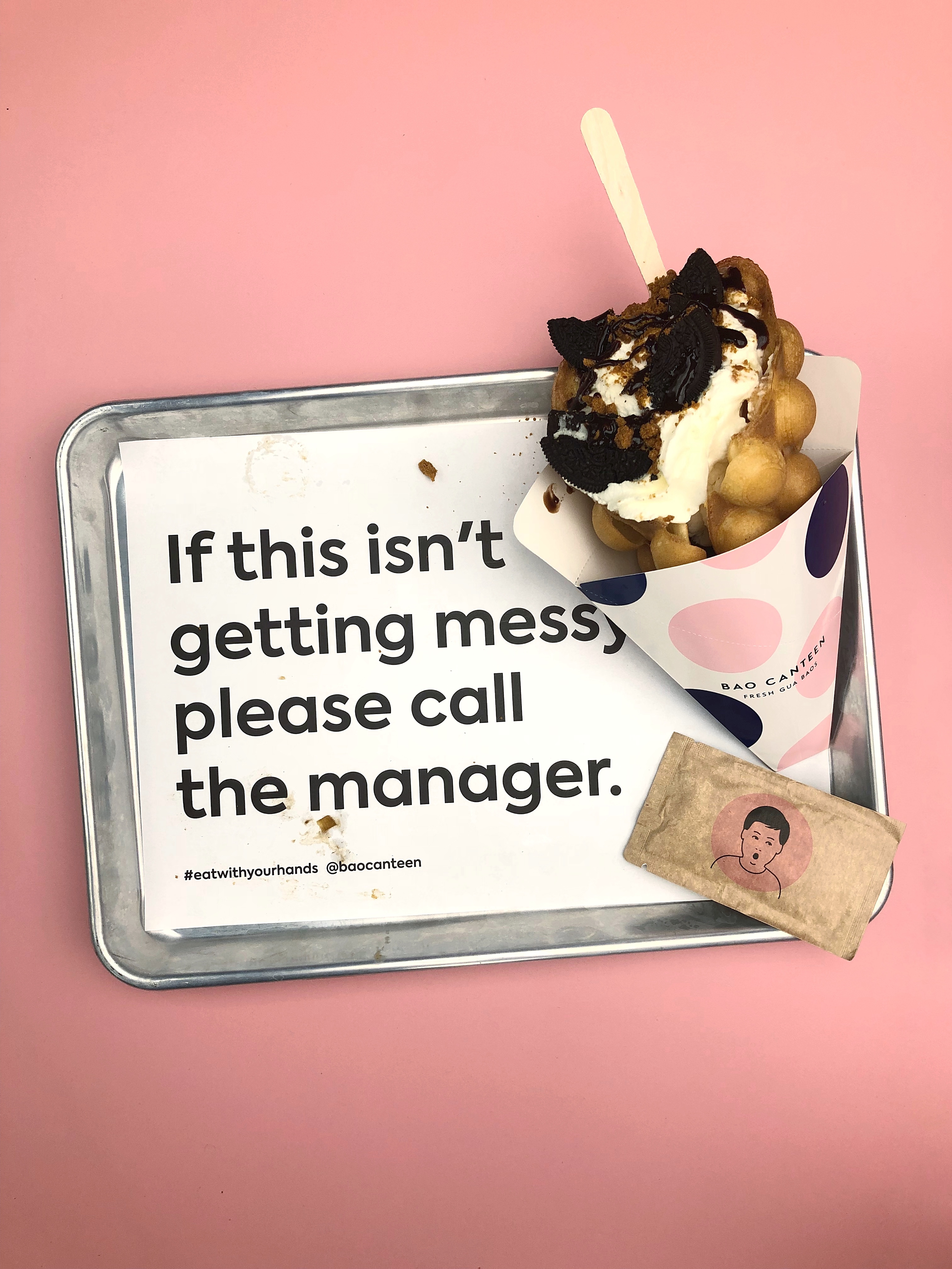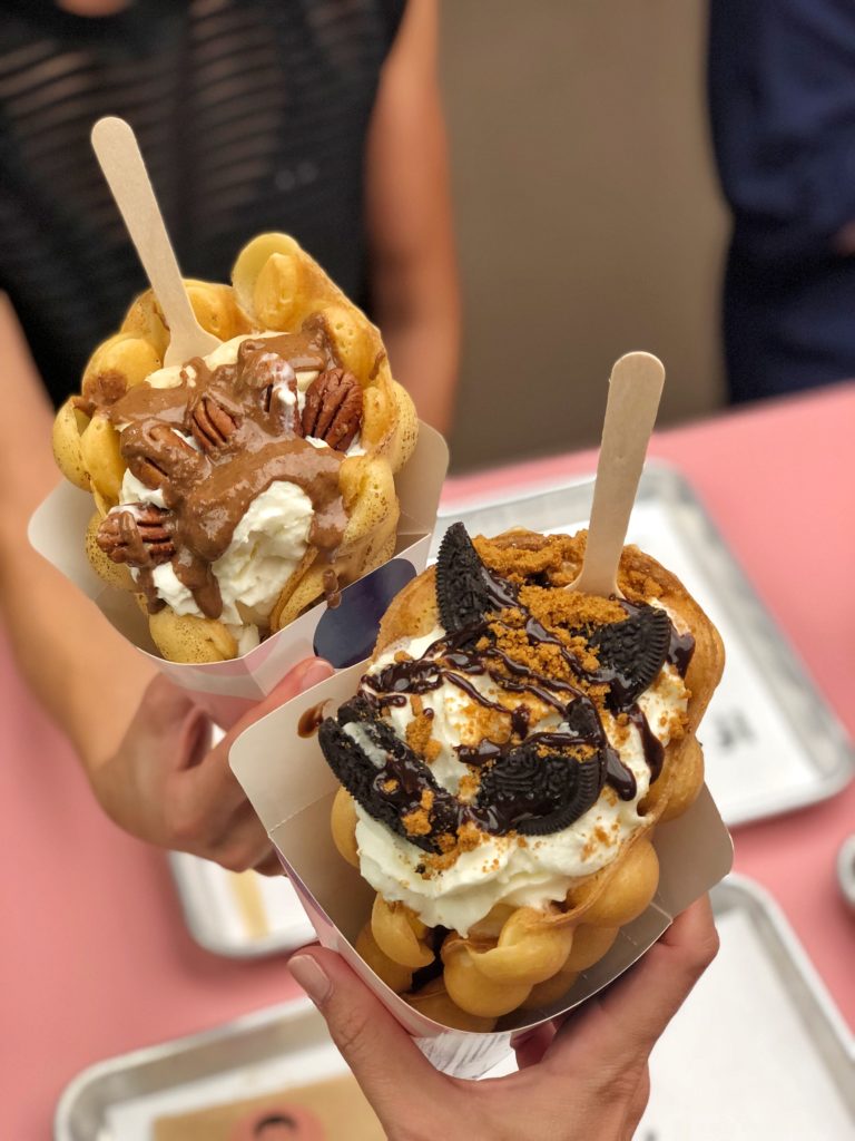 Pour le dessert, nous nous sommes laissées tenter par une gaufre bien gourmande, j’ai opté pour la « Grand Central » aux Oreo et ma collègue pour la « Tapei Main Station » à la banane et noix de pécan à 11frs/pièce. Elles étaient très bonnes et ont tenu toutes leurs promesses.