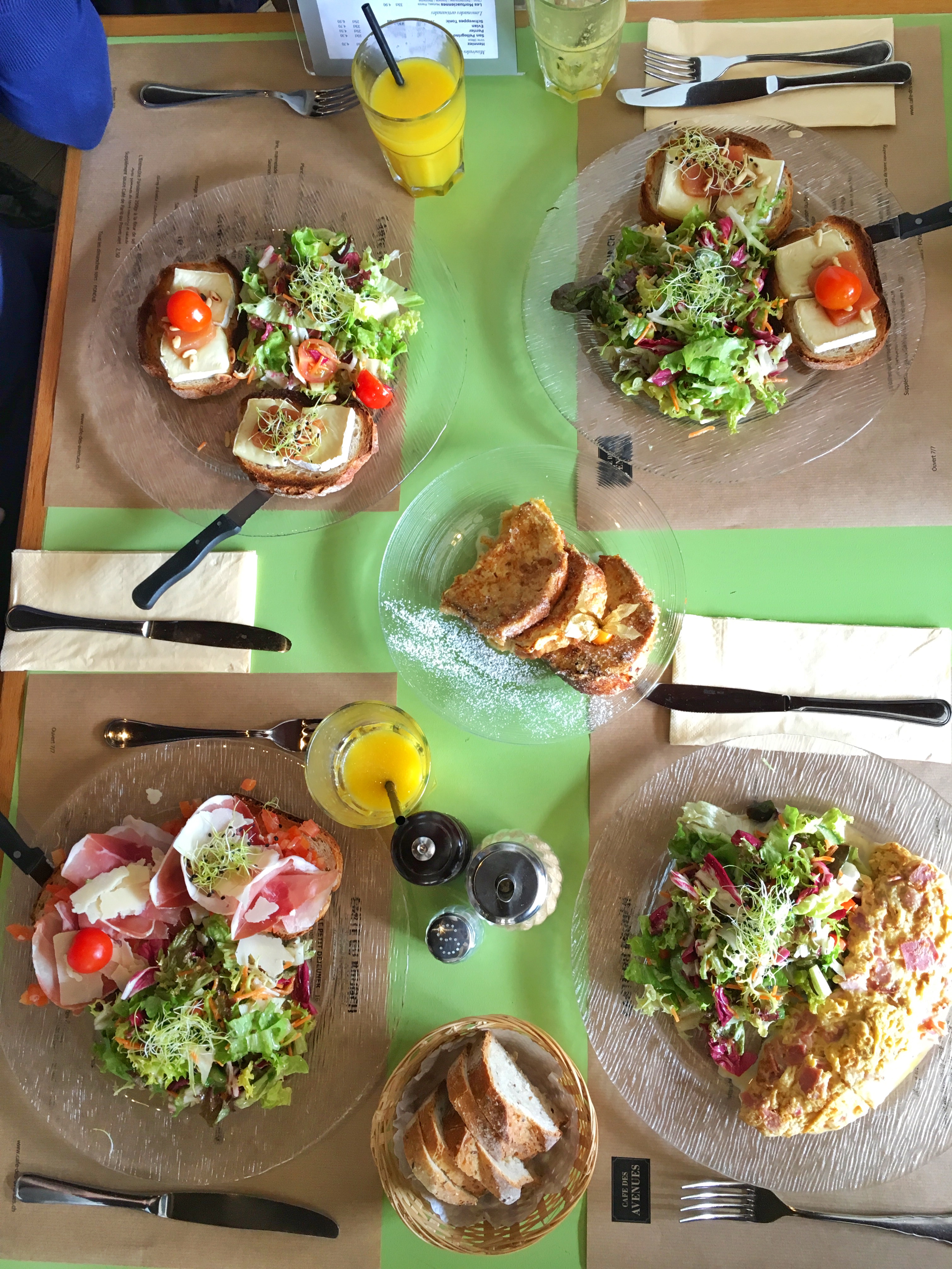 J’ai craqué pour l’omelette jambon-gruyère, elle était délicieuse! Et mes cops ont opté pour les tartines qui étaient très bonnes aussi.