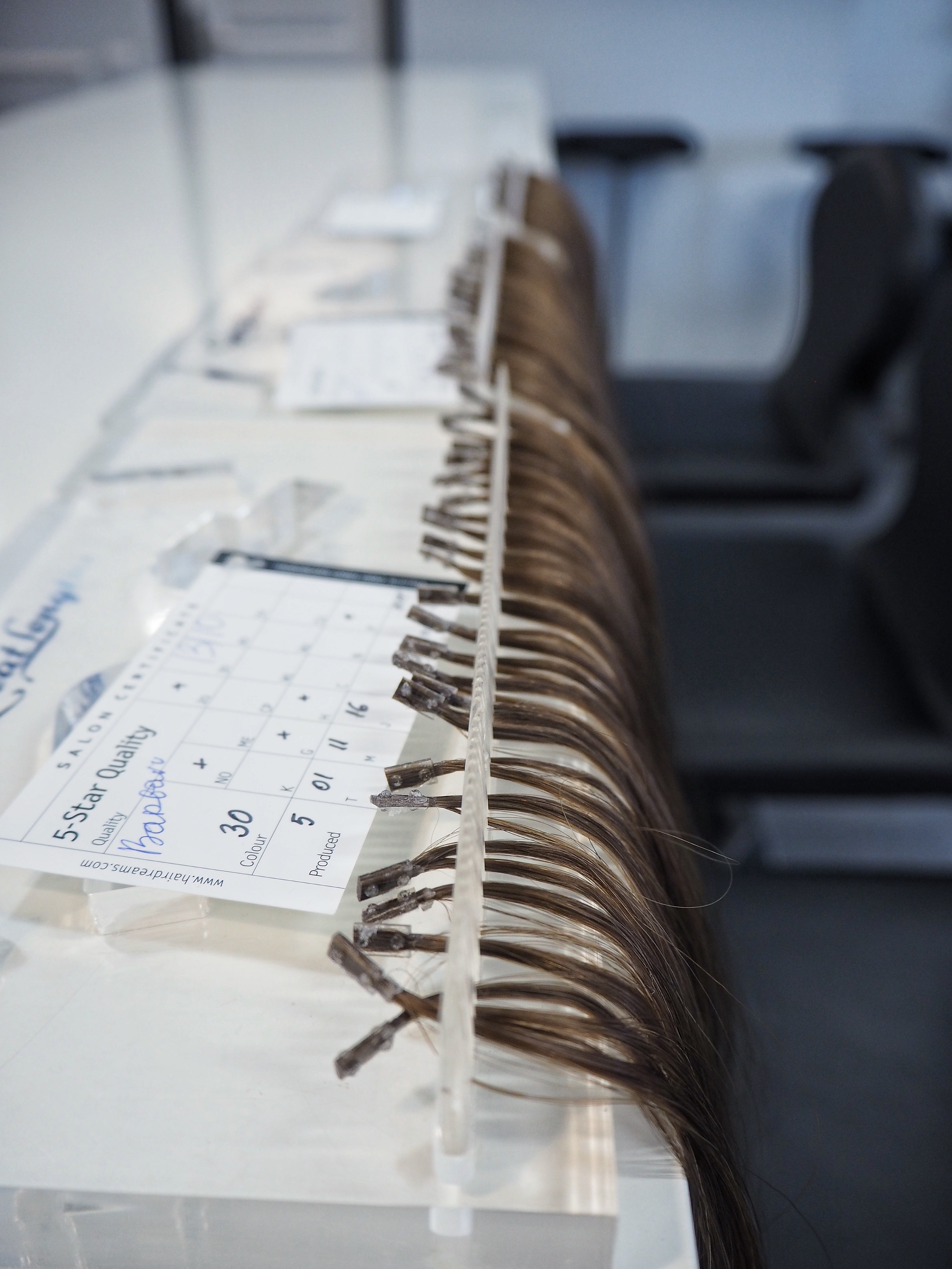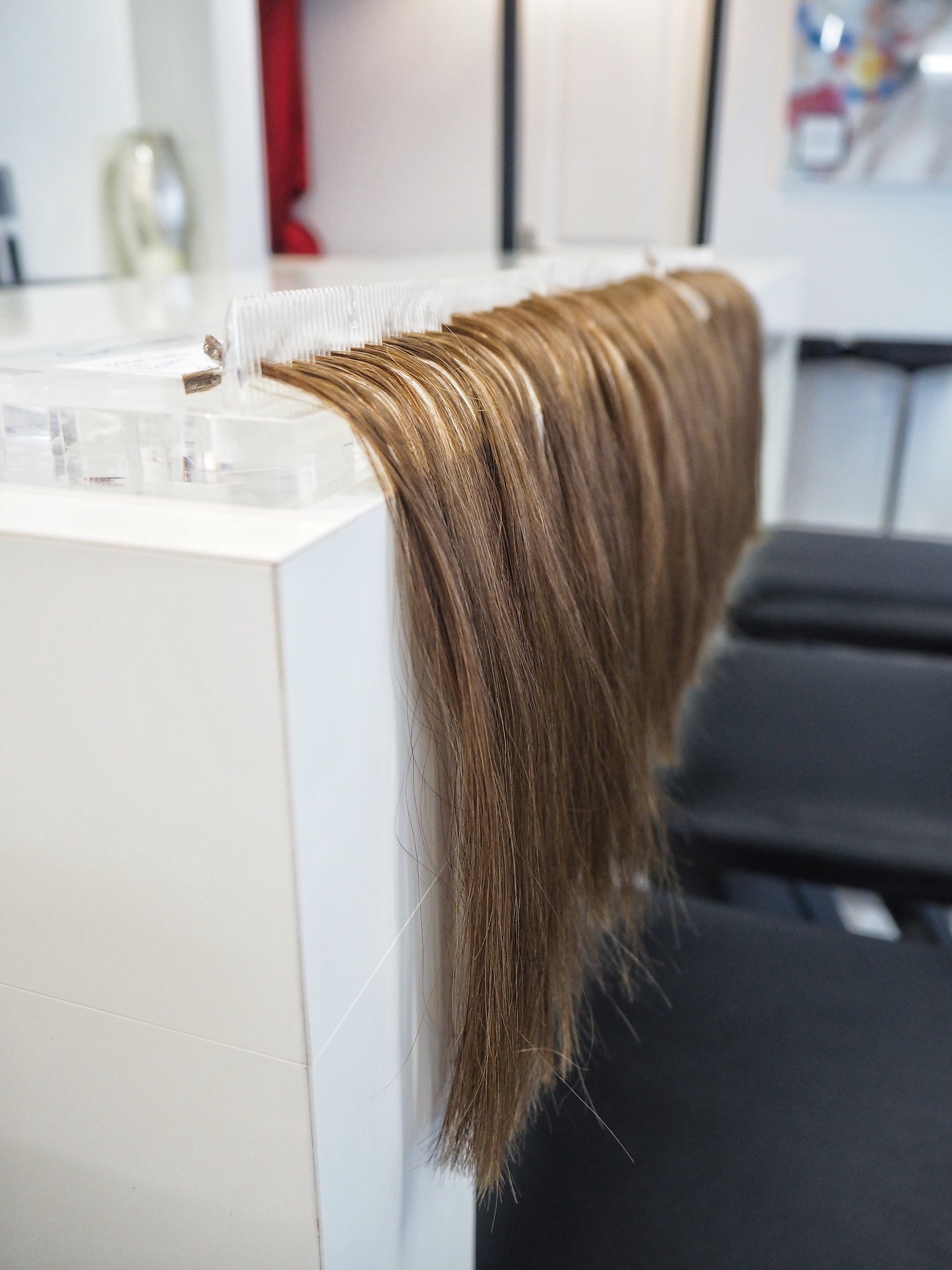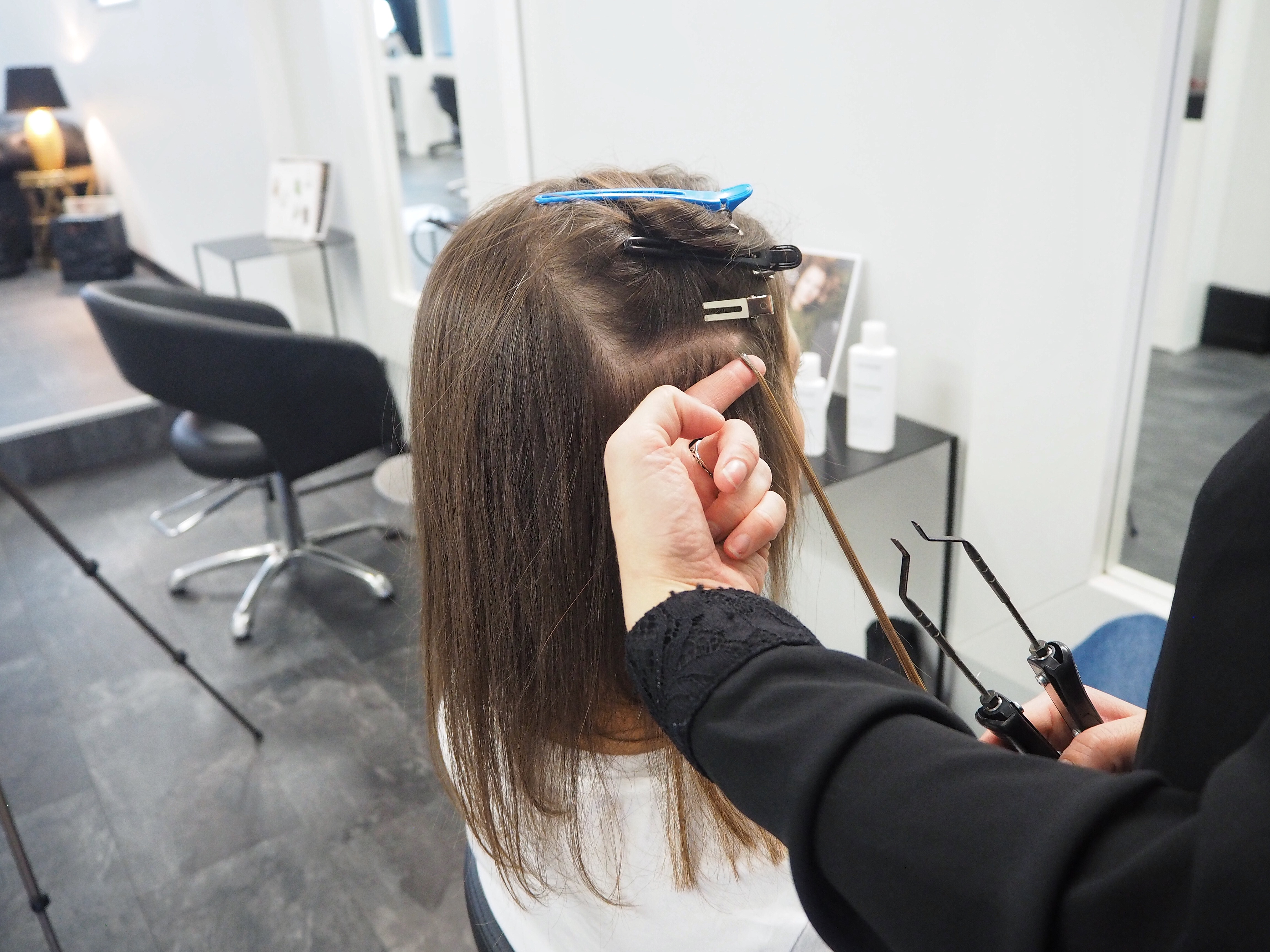 C’est ensuite 75 extensions Hairdreams de 20 centimètres qui allaient être posées sur ma tête. Le processus est bien plus simple que ce que j’imaginais. Julie me les a posé une à une avec un appareil chauffant permettant de « coller » le haut de la mèche à quelques uns de mes cheveux.