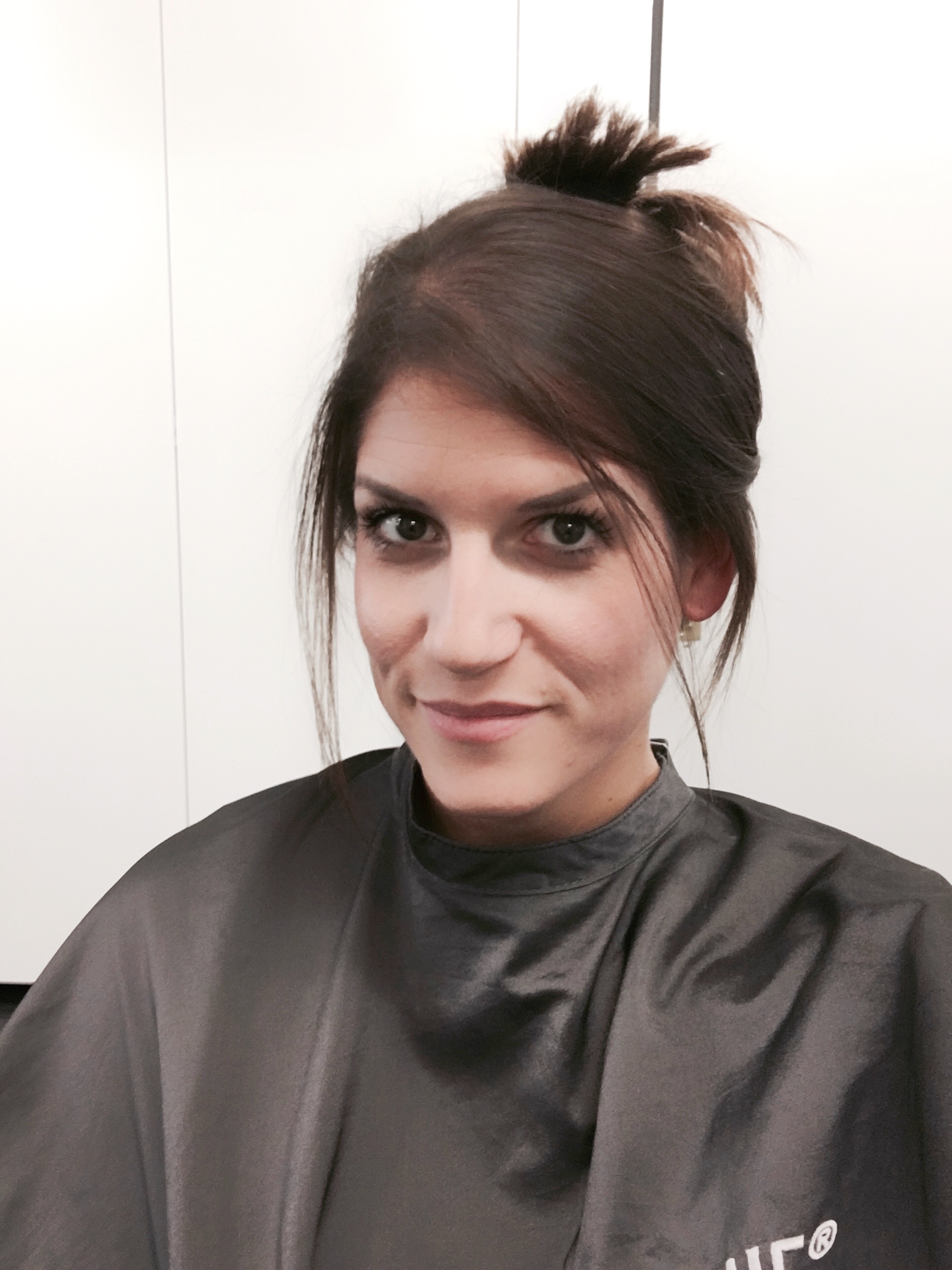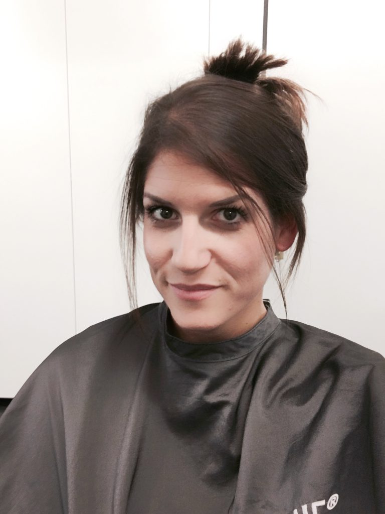 C’est Julie, la responsable du salon de Genève qui s’est occupée de moi. Sans rien vous cacher, j’étais un peu tendue en arrivant.. simplement parce que j’avais peur de l’inconnu. J’étais effrayée de ressortir avec une tout autre tête qui ne me convienne pas vraiment, j’appréhendais aussi la sensation d’avoir des cheveux qui ne sont pas les miens.