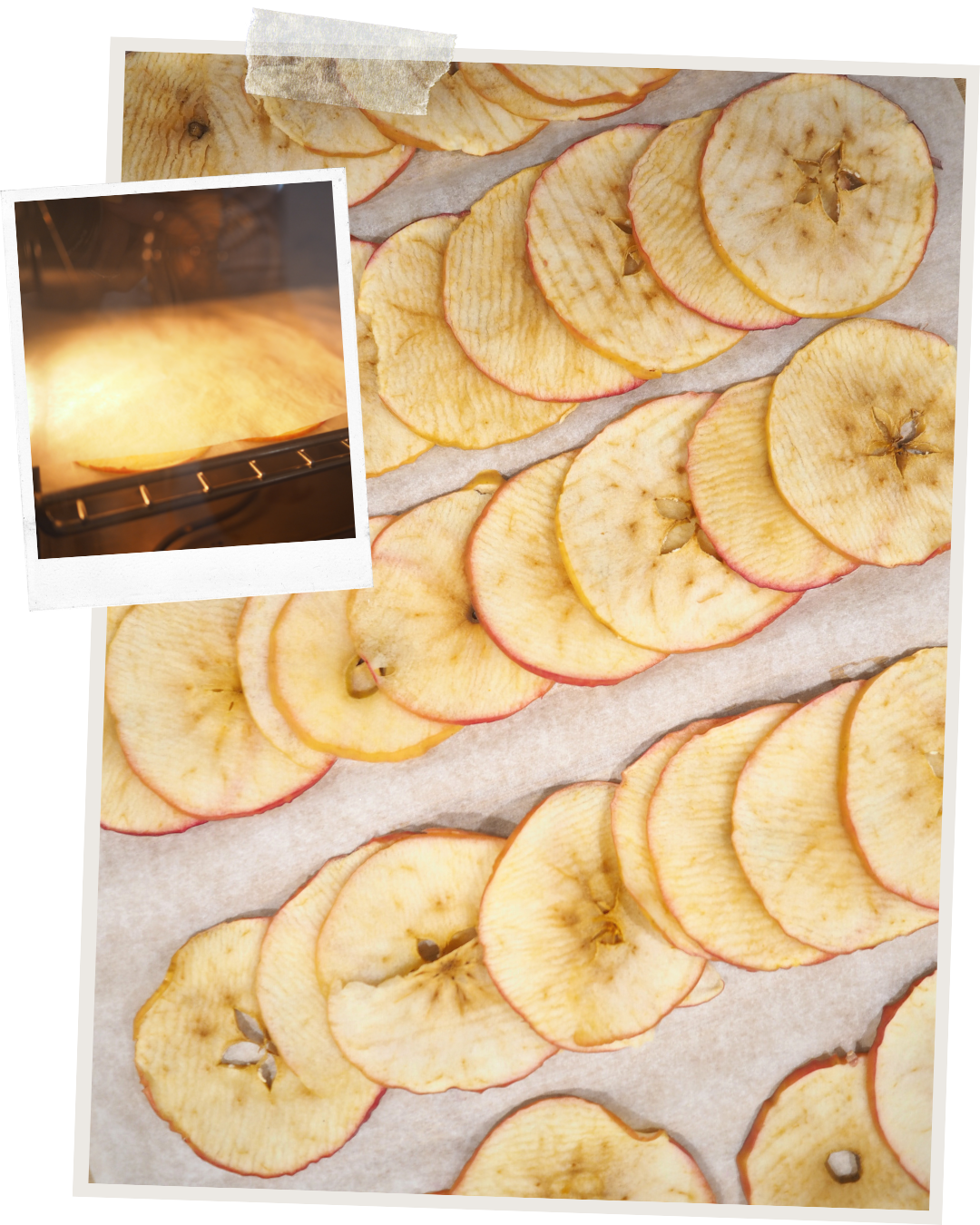 3. Déposez les pommes sur une grille allant au four recouverte de papier sulfurisé