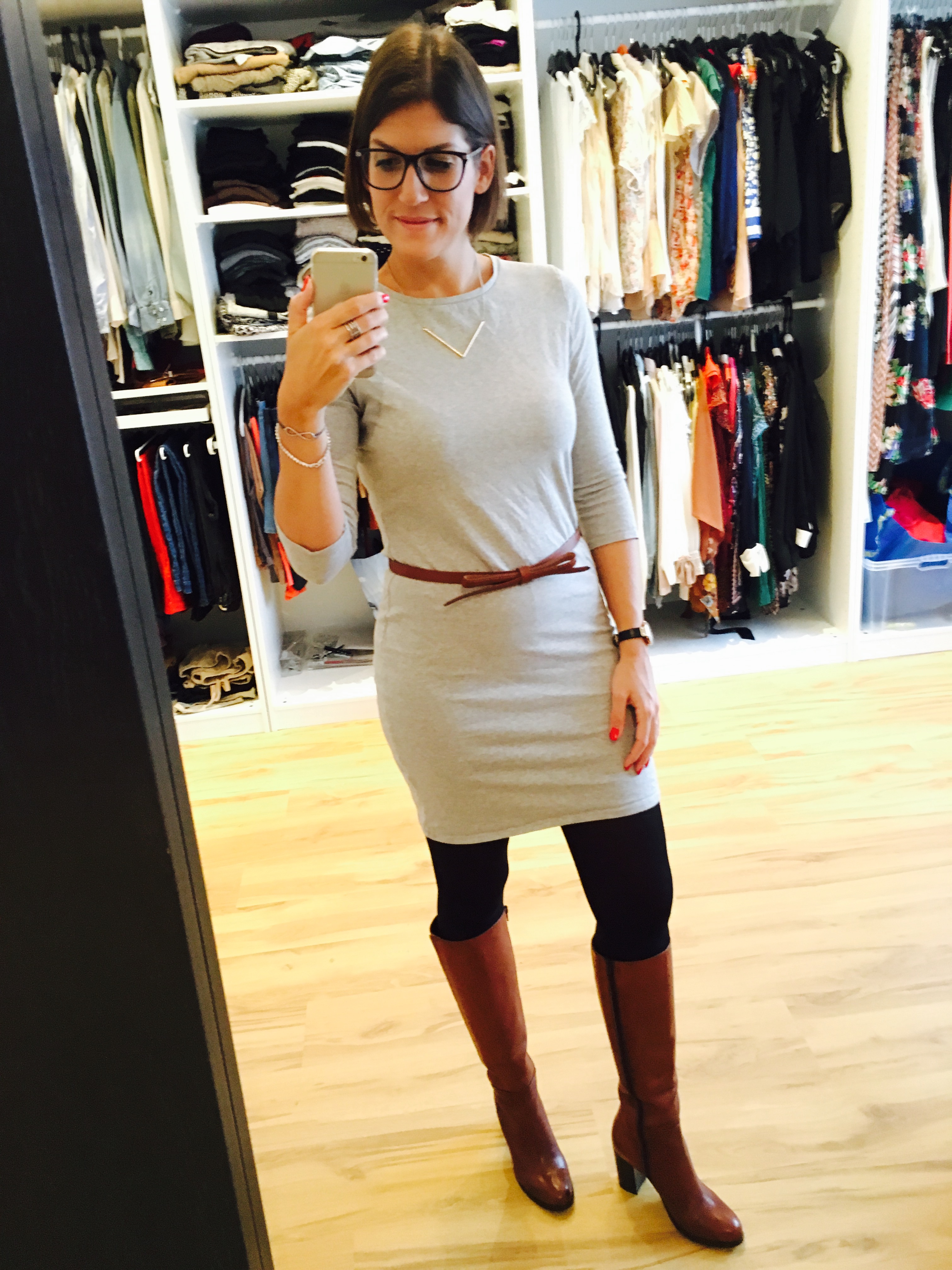 J’aime bien faire des raccords, c’est plus fort que moi… Alors quand je porte des chaussures qui ne sont pas noires mais dans des tons sobres j’essaie d’y accorder un ou plusieurs accessoires. Cette jolie montre est juste parfaite pour cette tenue! Son bracelet en cuir est exactement la même couleur que mes bottes et ma ceinture et son cadrant noir lui donne beaucoup de charisme.