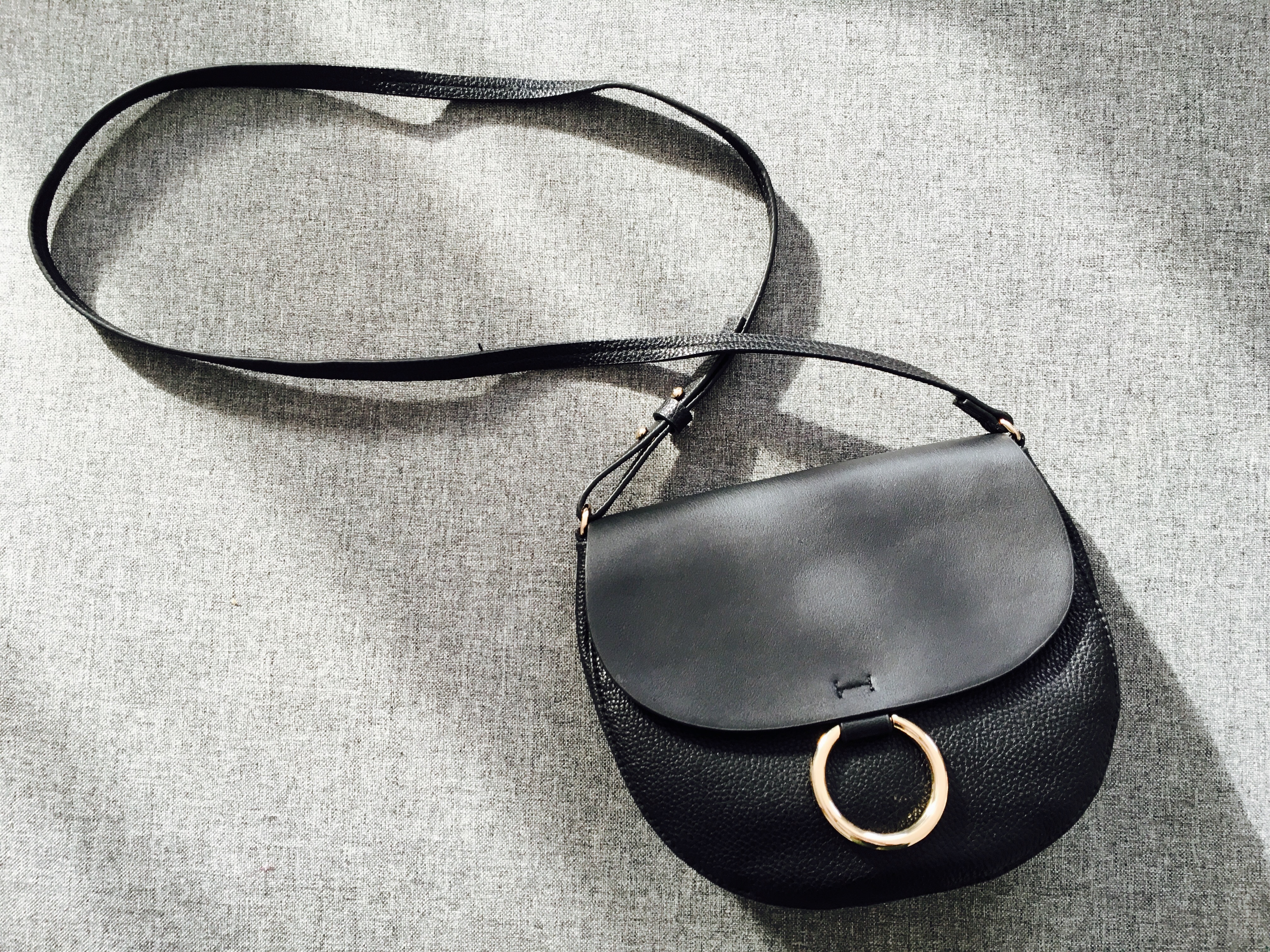 Et parce que la tenue d’une femme n’est jamais complète sans son sac à main, j’ai craqué pour cette pochette à boucle à double textures que l’on peut porter en bandoulière ou à la main.