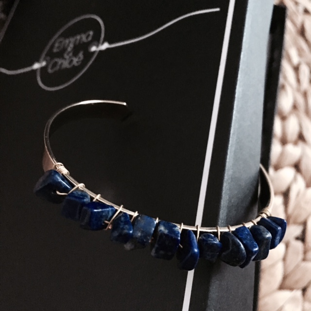 - Une manchette dorée AZUCAR (avec rang de pierres bleues) dans sa jolie pochette E&C