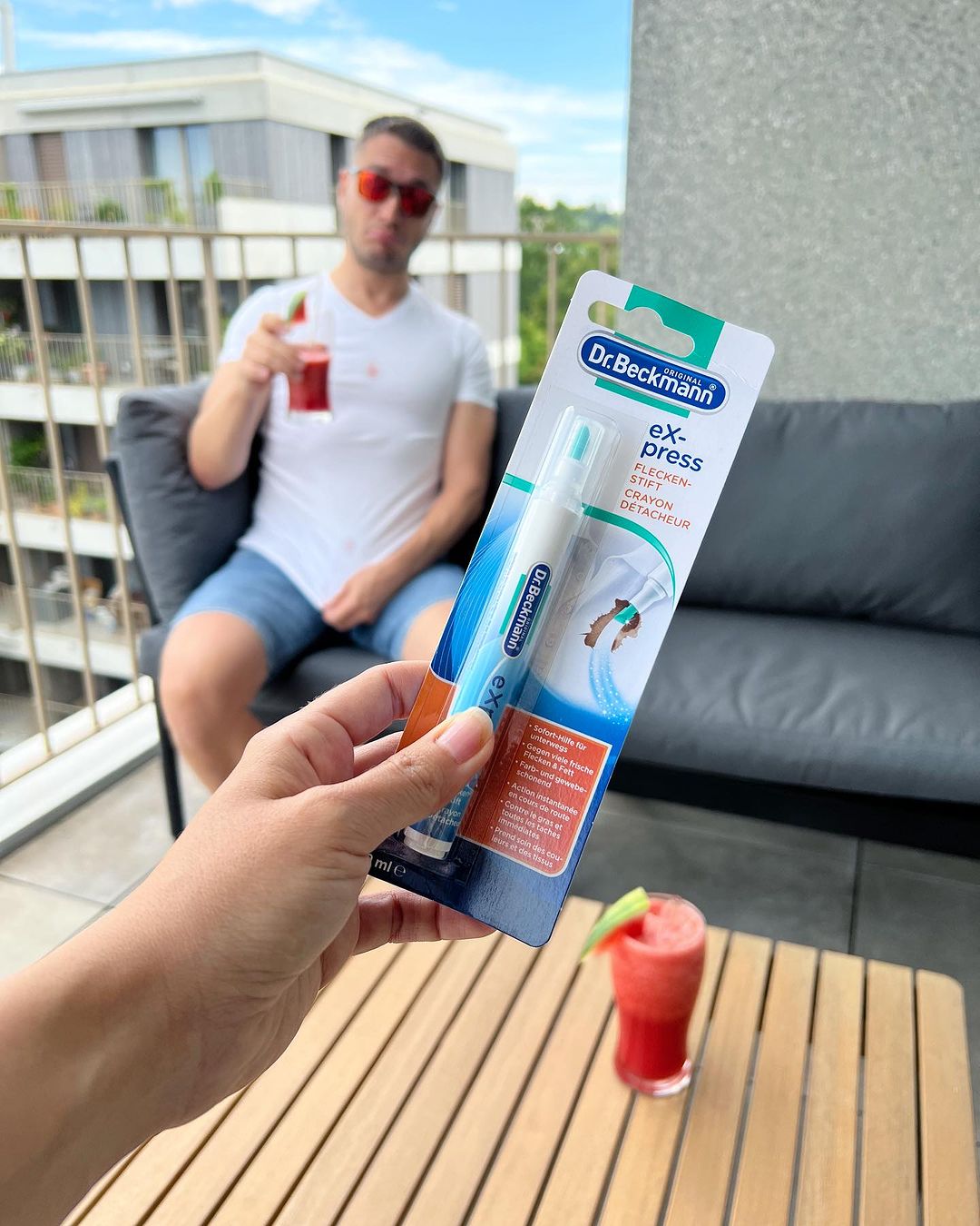 Heureusement, Dr. Beckmann a la solution idéale pour tous les amateurs de lifestyle actif: le crayon détachant. Avec sa formule puissante et son design pratique, ce crayon est l’accessoire incontournable à glisser dans votre sac ou votre poche, pour que vos taches ne viennent plus jamais gâcher vos moments estivaux.