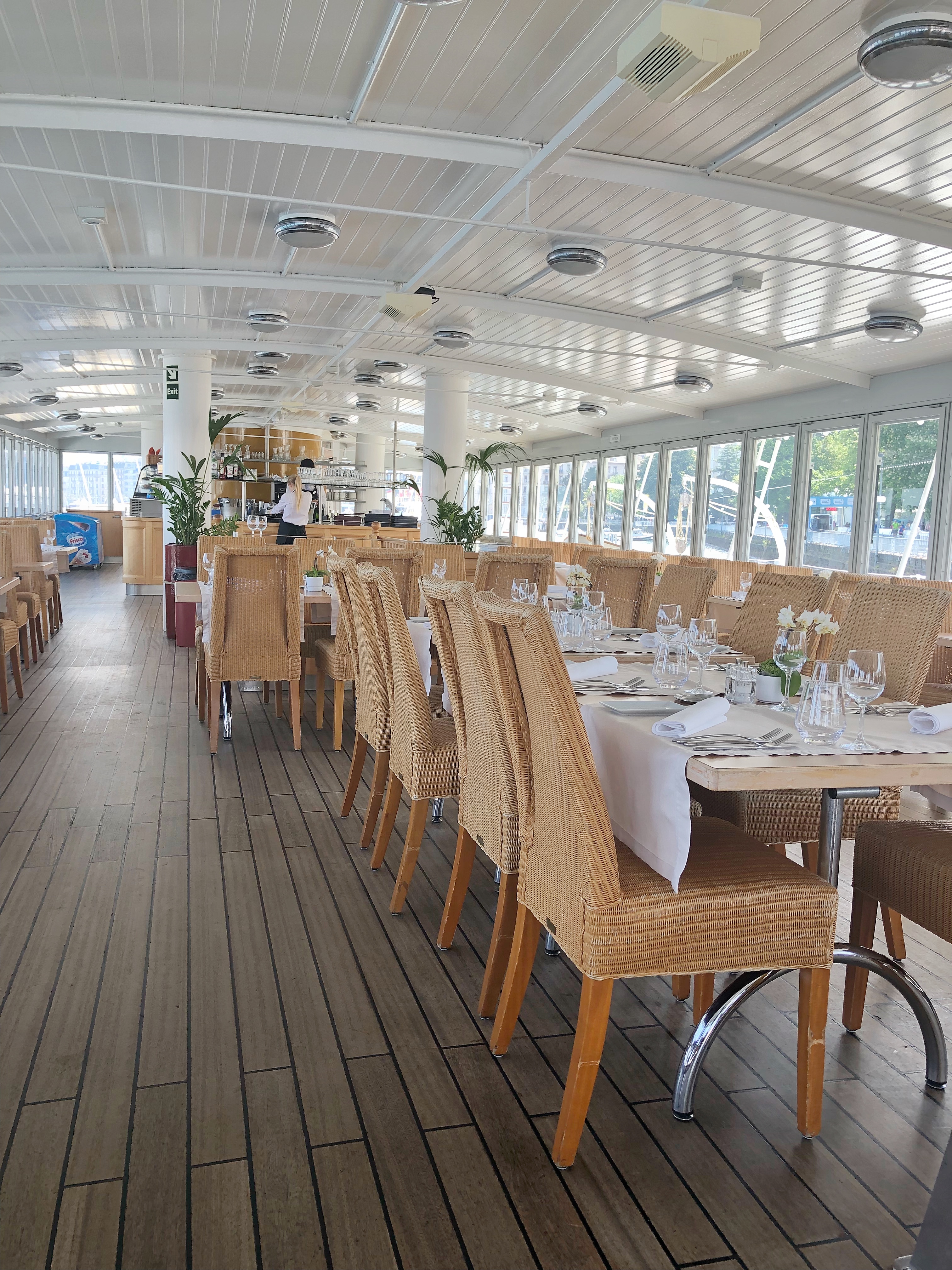 Tarif: 99 CHF – La croisière (en plein tarif) et le menu 3 plats (boissons en sus) par personne