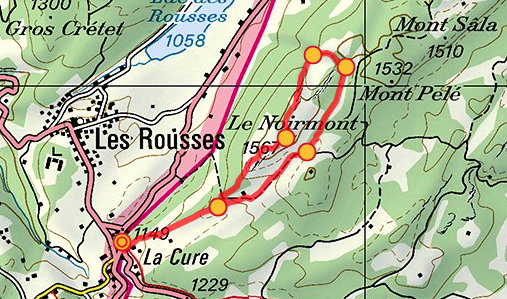 Nous sommes partis de la gare de la Cure pour une boucle de 14 kilomètres, en passant par le sommet du Noirmont qui offre un superbe panorama sur les environs.