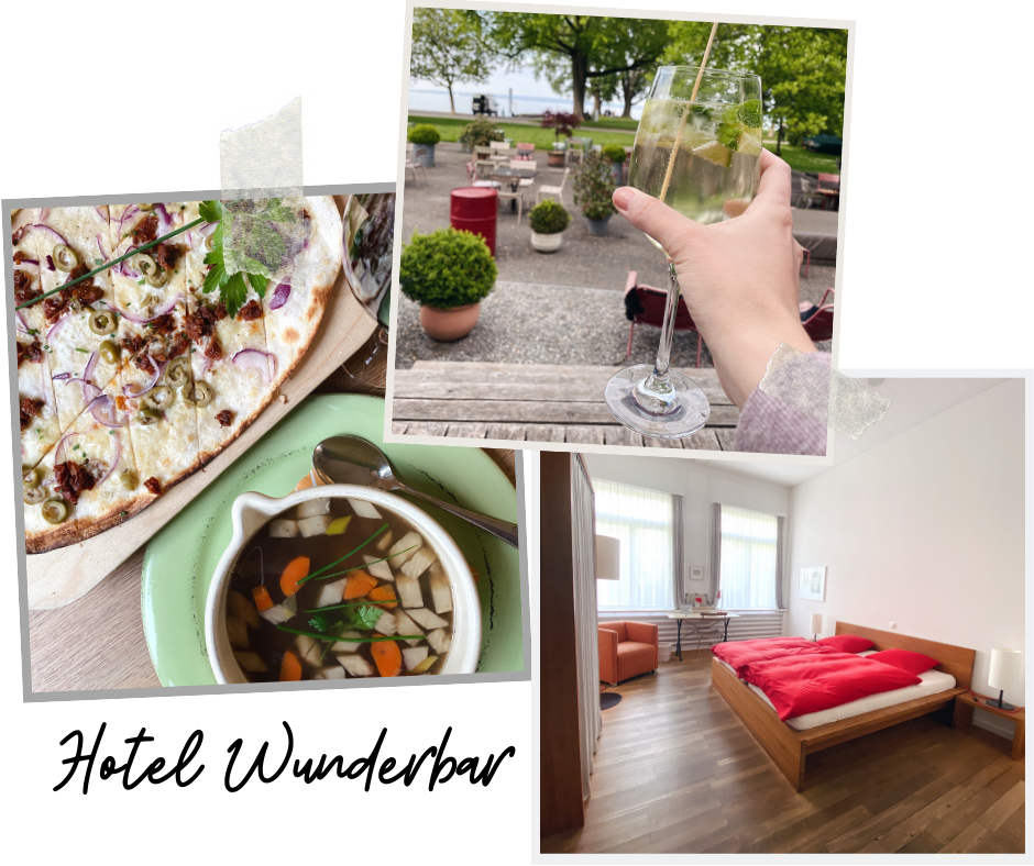 Une fois décrassés, nous nous dirigé vers la terrasse du Wunderbar qui donne directement sur le bord du lac pour siroter un petit apéro, bien mérité! En plein déconfinement, nous avons scrupuleusement suivi le protocole et avons mangé sur place bien que les lieux et le menu aient été quelque peu bousculé.