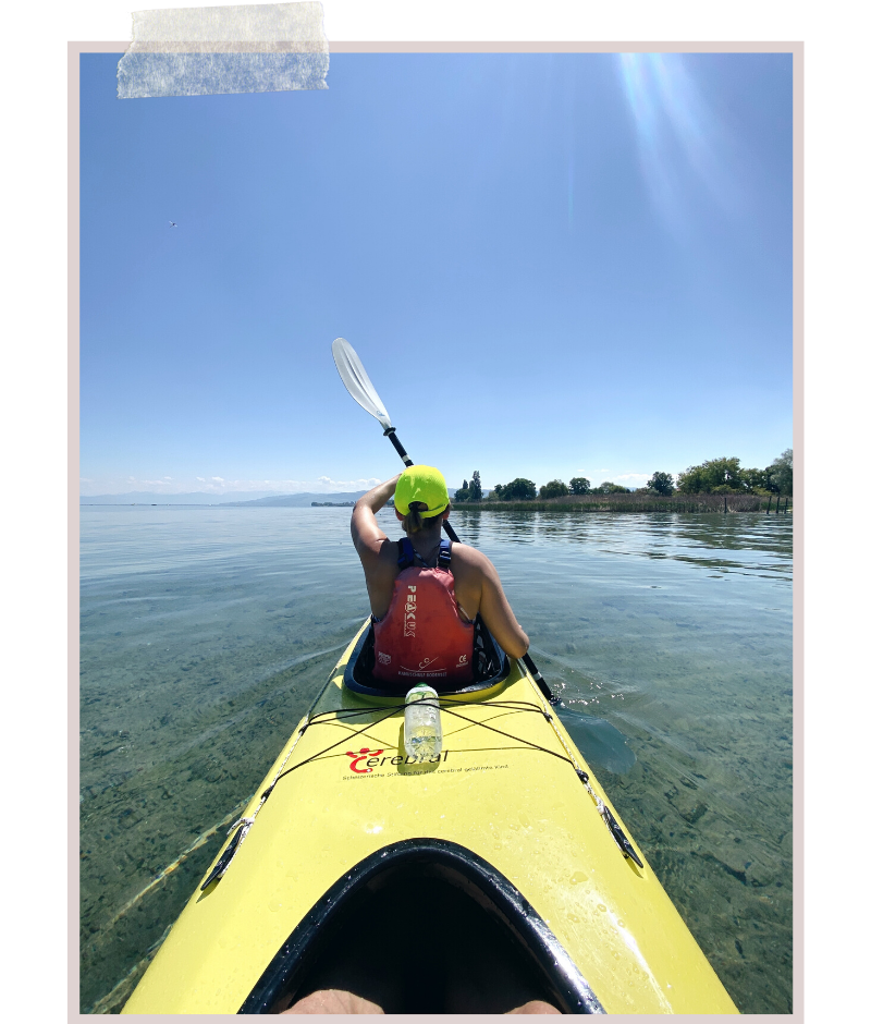 Une initiation au canoë était prévue mais les circonstances du Covid-19 ne nous permettaient pas de respecter la distance avec les instructeurs, nous avons donc choisi de faire un tour en kayak sur le Lac de Constance.