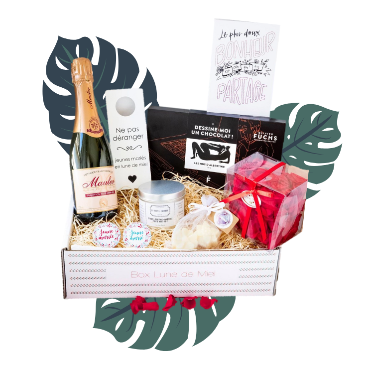 Pour nos 1 an de mariage, nous avons reçu une jolie box spéciale « Lune de Miel » venant de My Wedding Box. A l’intérieur, plein de petites merveilles à consommer à deux: