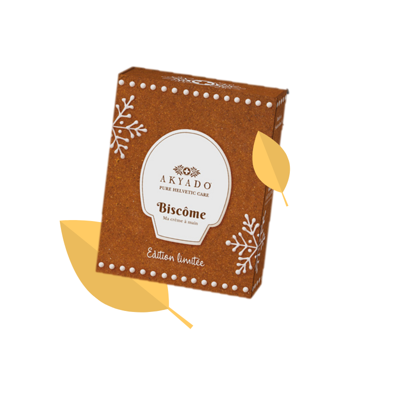 Ca sent Noël! La marque suisse Akyado sort chaque année des crèmes pour les mains dans le thème de la saison. La senteur Biscôme est exquise, on a clairement envie de se croquer les doigts! Je craque aussi pour la senteur « Fleur de lait » qui est plus légère et facile à appliquer toute l’année.