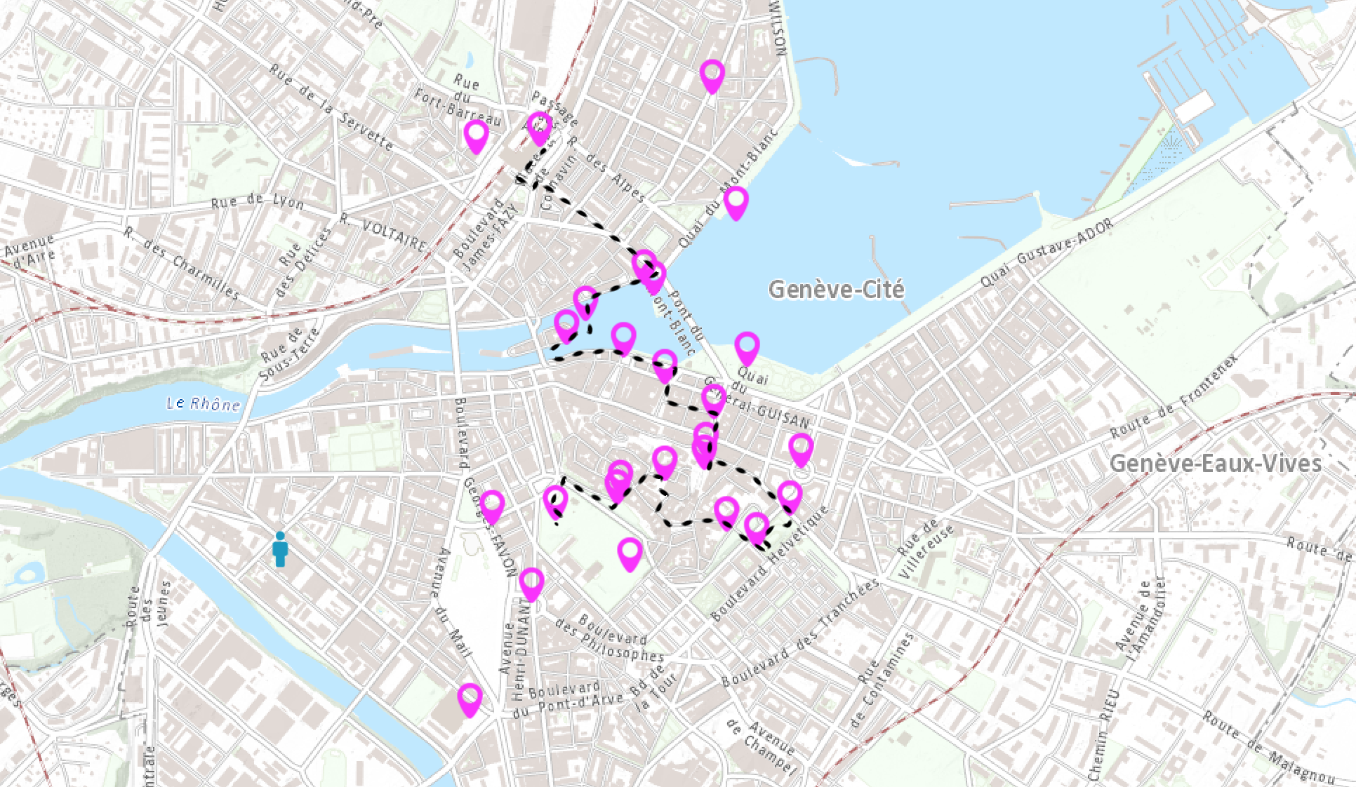 Genève Tourisme propose un tour organisé de 2h en petit train, pour ceux qui souhaiteraient voir un maximum d’œuvres en un minimum d’efforts. Le tour a lieu les 24, 25, 30 et 31 janvier 2020 ainsi que le samedi 1er février 2020. Le lieu de rendez-vous est à 17h00 depuis l’Office du tourisme (Rue du Mont-Blanc 18) et son tarif est de 15 CHF (adulte), 10 CHF (étudiant), enfant de moins de 11 ans, gratuit.