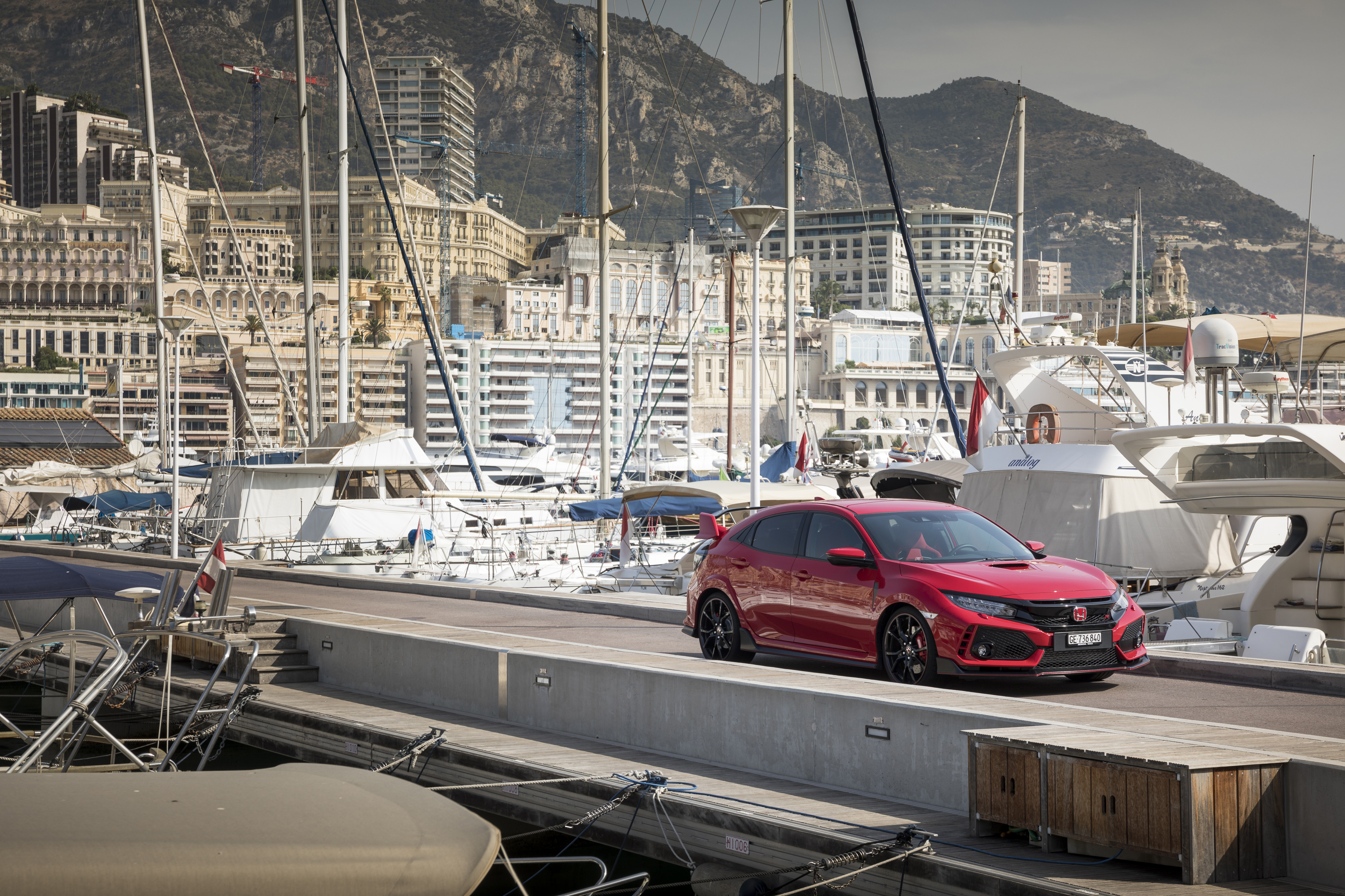 C’est au port de Monaco que nous avons été accueilli par l’équipe Honda et où nous avons pris connaissance de la nouvelle Civic Type R. A la suite de la conférence de presse officielle, une clé nous a été tendue, celle d’un modèle rouge flambant neuf (oui, oui, oui!!).