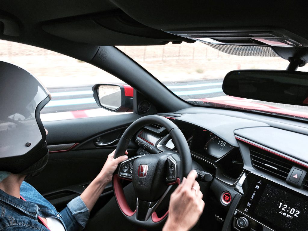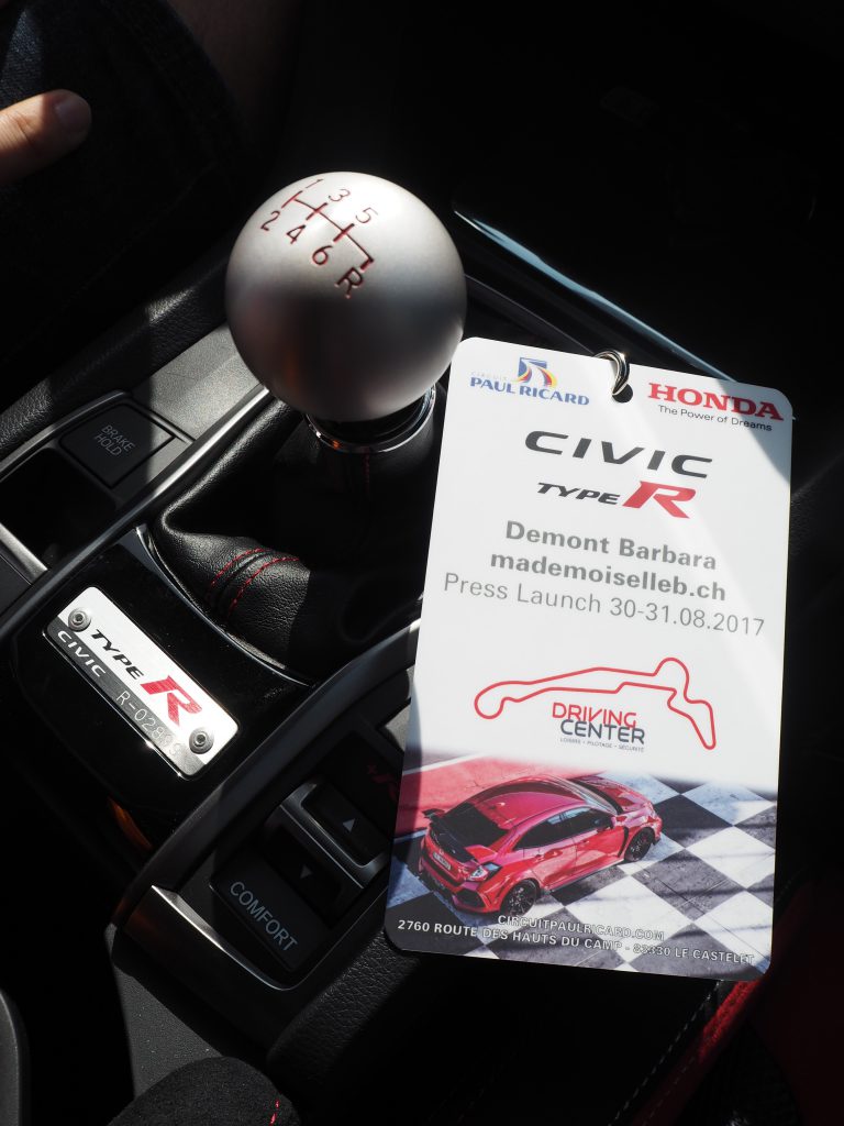 Une fois à bord, pas besoin d’activer le GPS, il est préprogrammé pour nous balader entre autoroute et petites routes jusqu’au Castellet. De quoi se faire la main et tester toutes ses fonctionnalités, en particulier les 3 différents modes, Comfort, Sport, Type R.