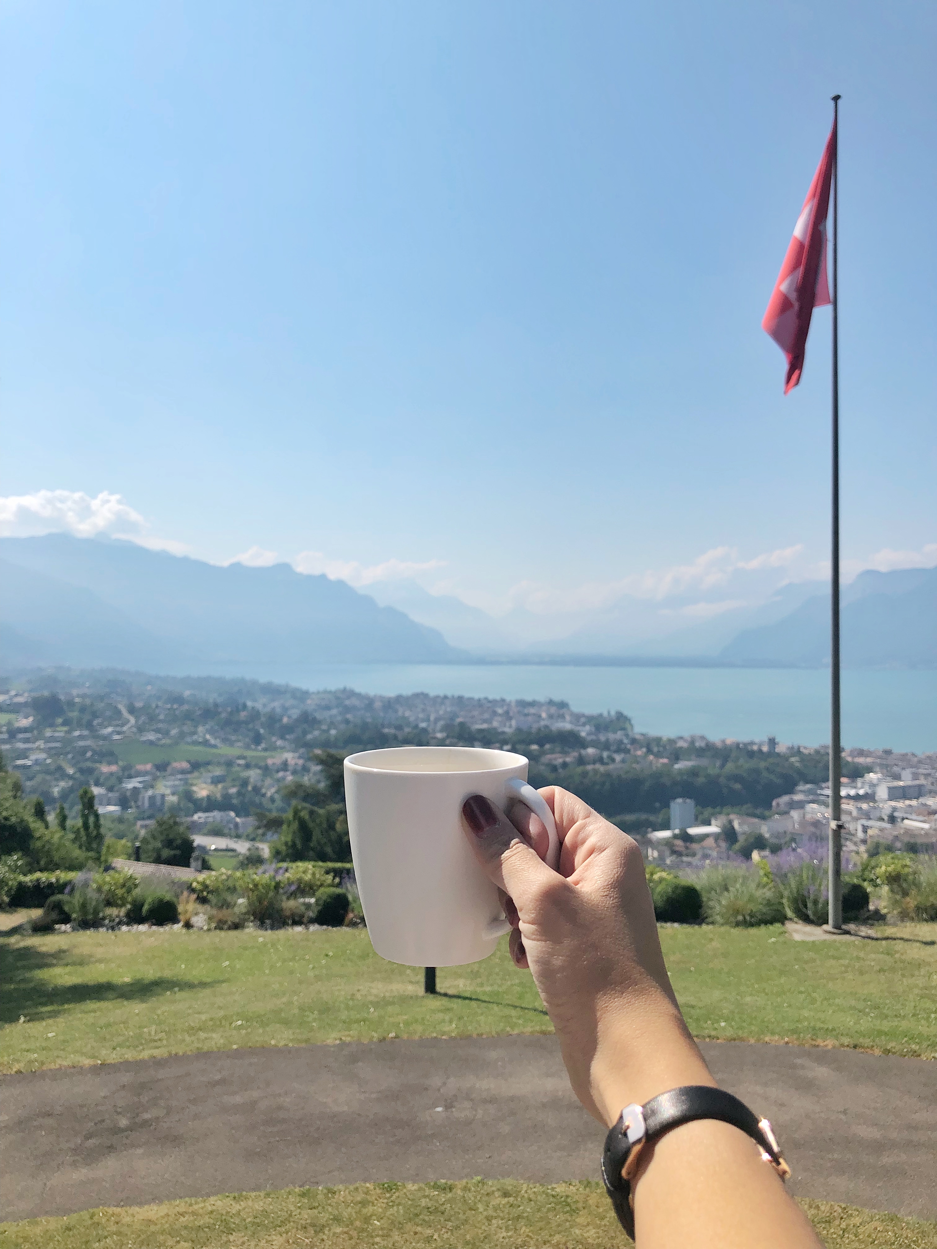 Perché sur les hauteurs de Vevey, l’hôtel bénéficie d’une vue plongeante sur le lac Léman et ses montagnes. Récemment rénové, l’établissement propose une déco contemporaine chic que j’apprécie tout particulièrement.