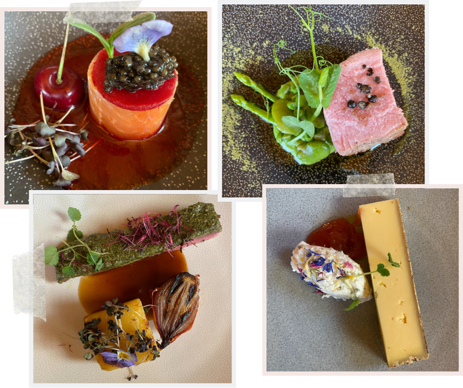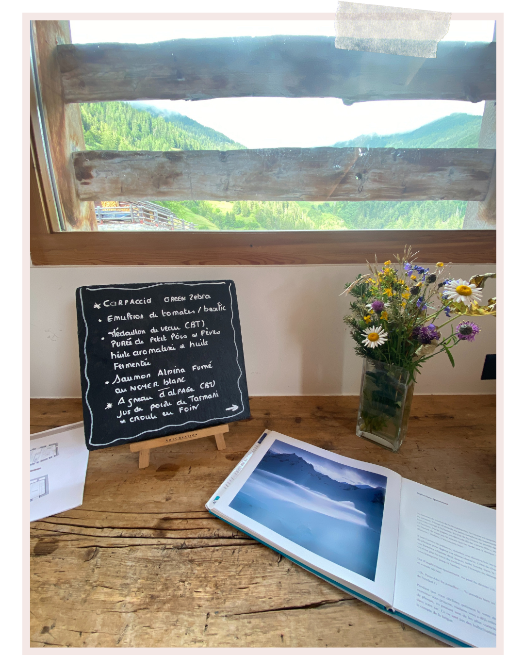 Le repas du soir s’est déroulé dans un chalet, habituellement disponible à la location. Le chef nous a concocté un menu 5 plats spécialement pour l’occasion, inspiré de la nature, avec des produits locaux.