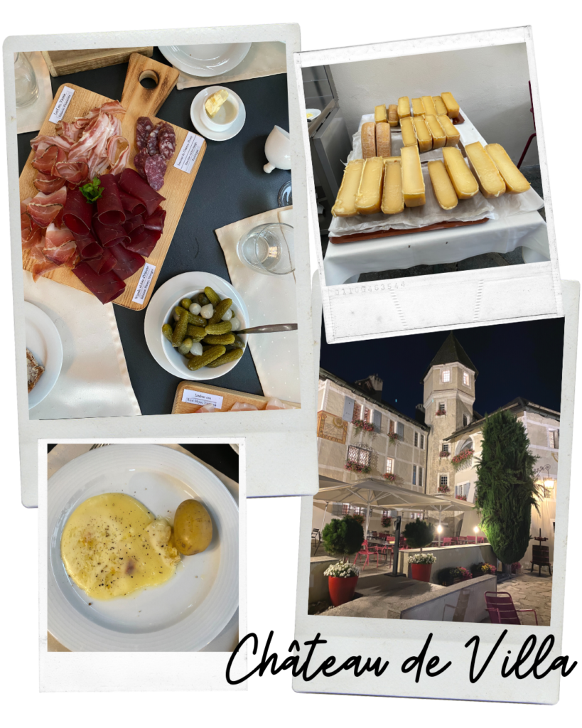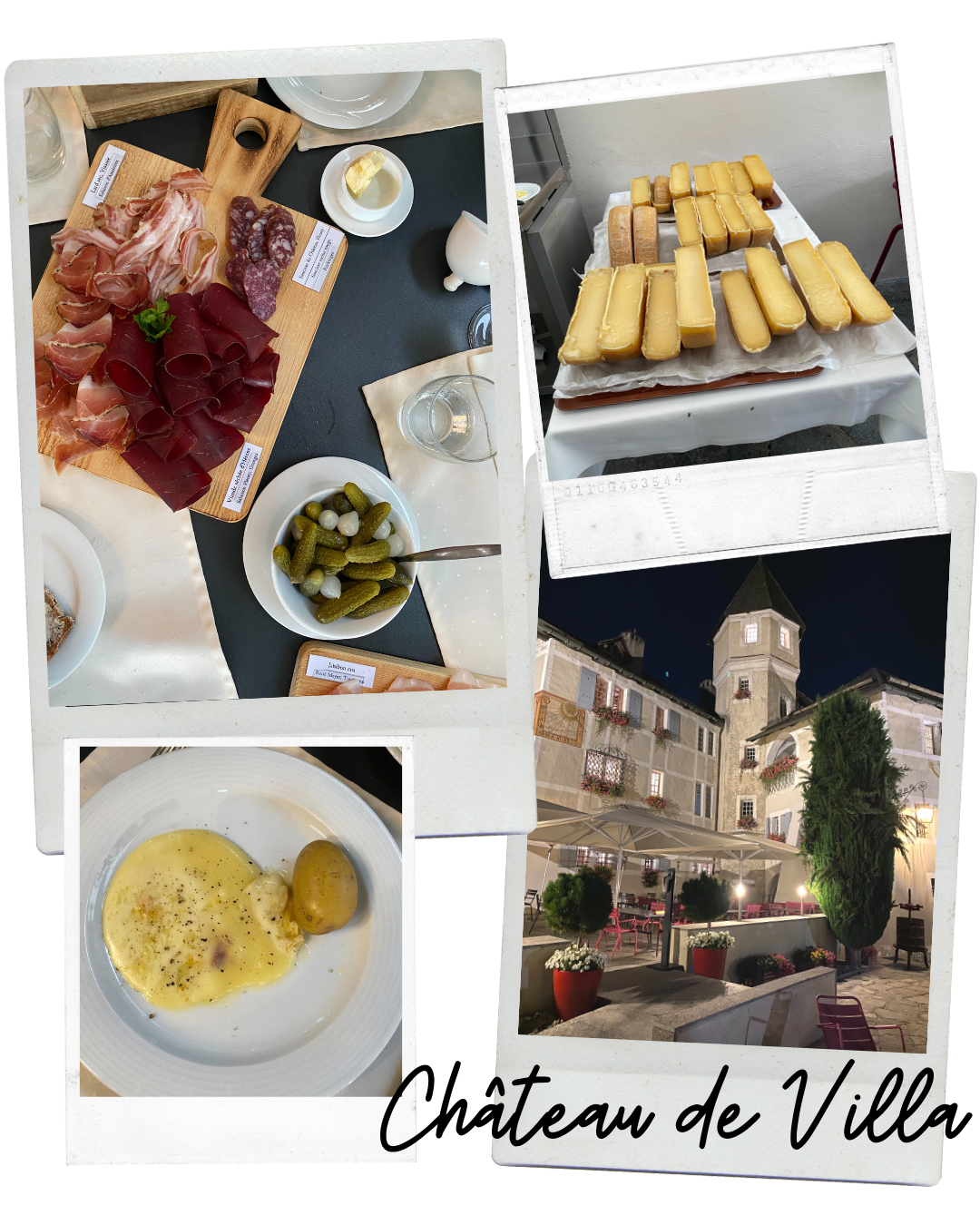 La soirée s’est poursuivie dans le cadre magnifique du Château, avec le menu phare du restaurant: planchette valaisanne et raclette. Cinq types de fromage des régions valaisannes sont proposées et un plan est fourni pour pouvoir mieux les situer.