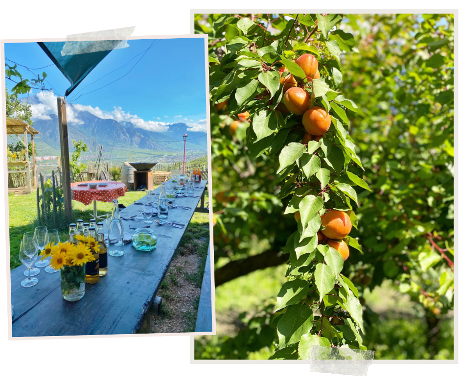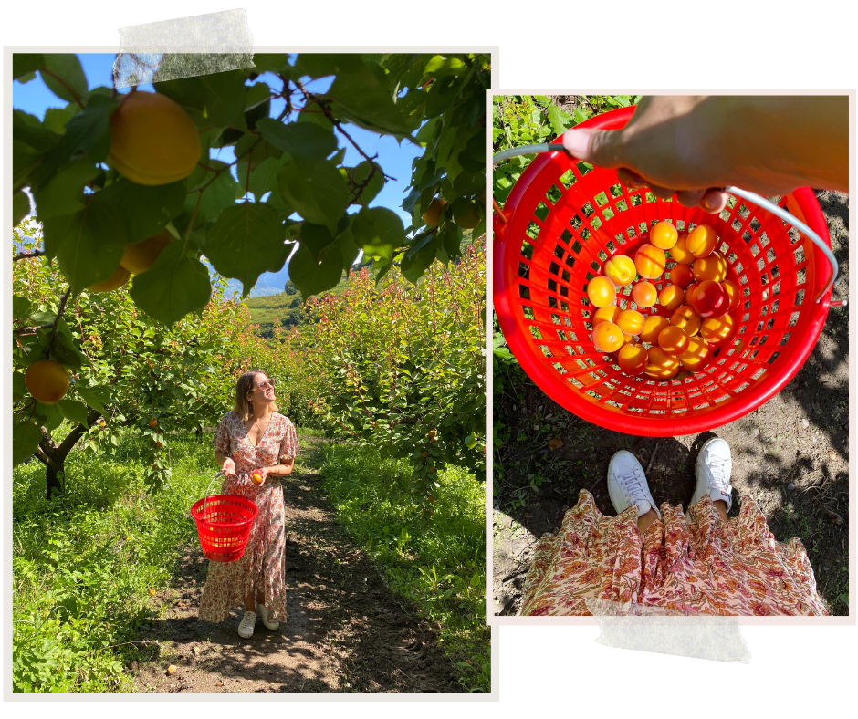 En route pour une des pentes sauvages et solitaires des hauts de Saxon où Illona Thétaz, la productrice de ce lieu exceptionnel, nous attendait pour une cueillette d’abricots et un menu mettant ce fruit à l’honneur.