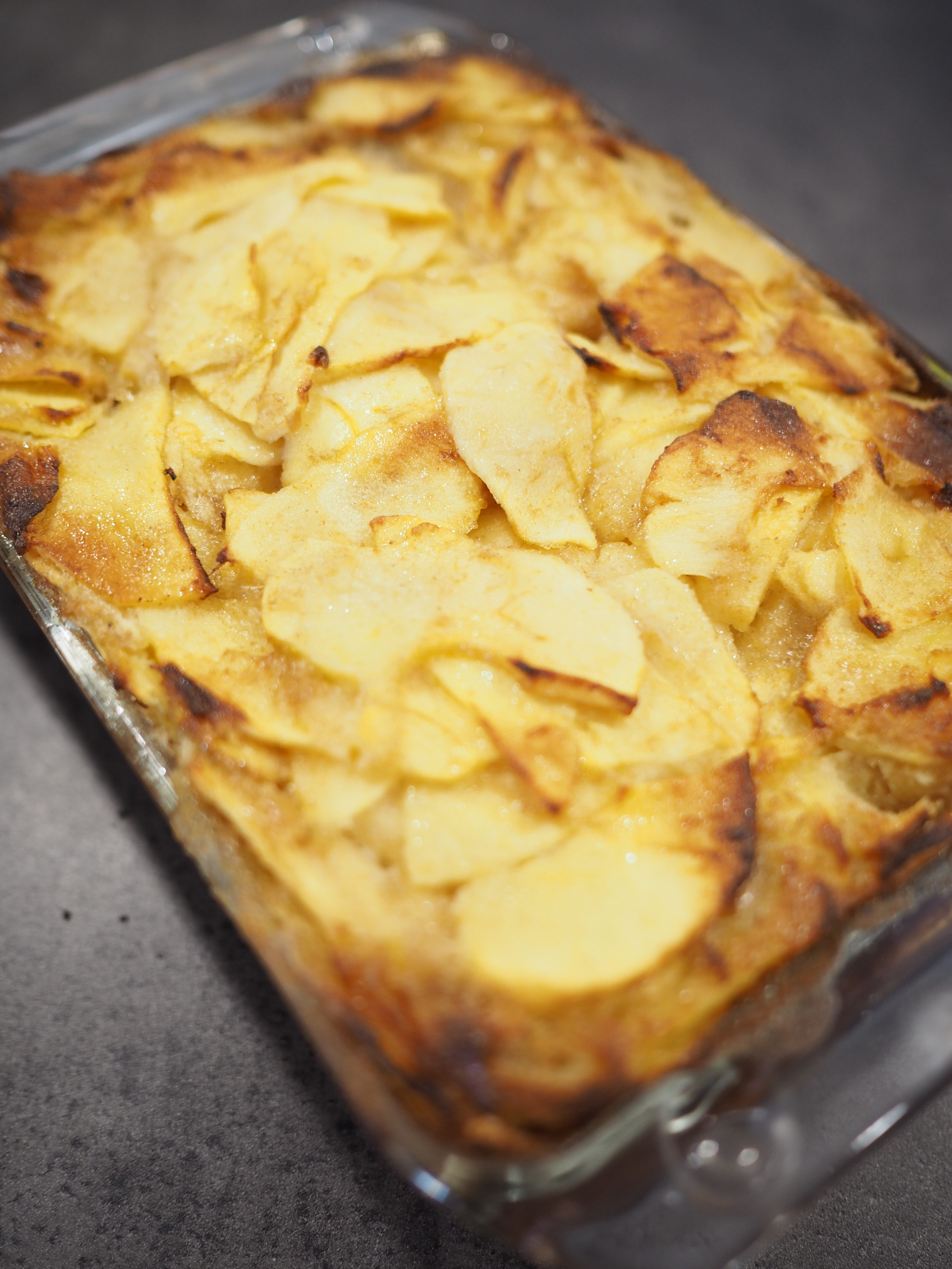 Etant à la maison ces jours, j’ai voulu varier les plaisirs en faisant un dessert gourmand mais équilibré. Je me suis laissée tentée à faire un invisible aux pommes.