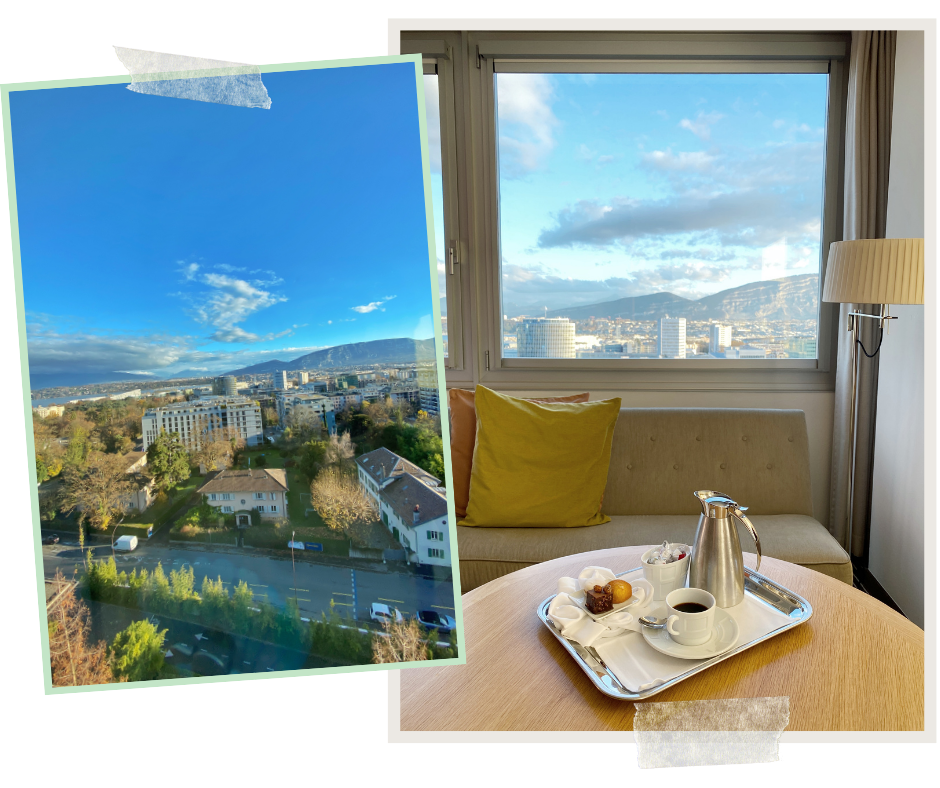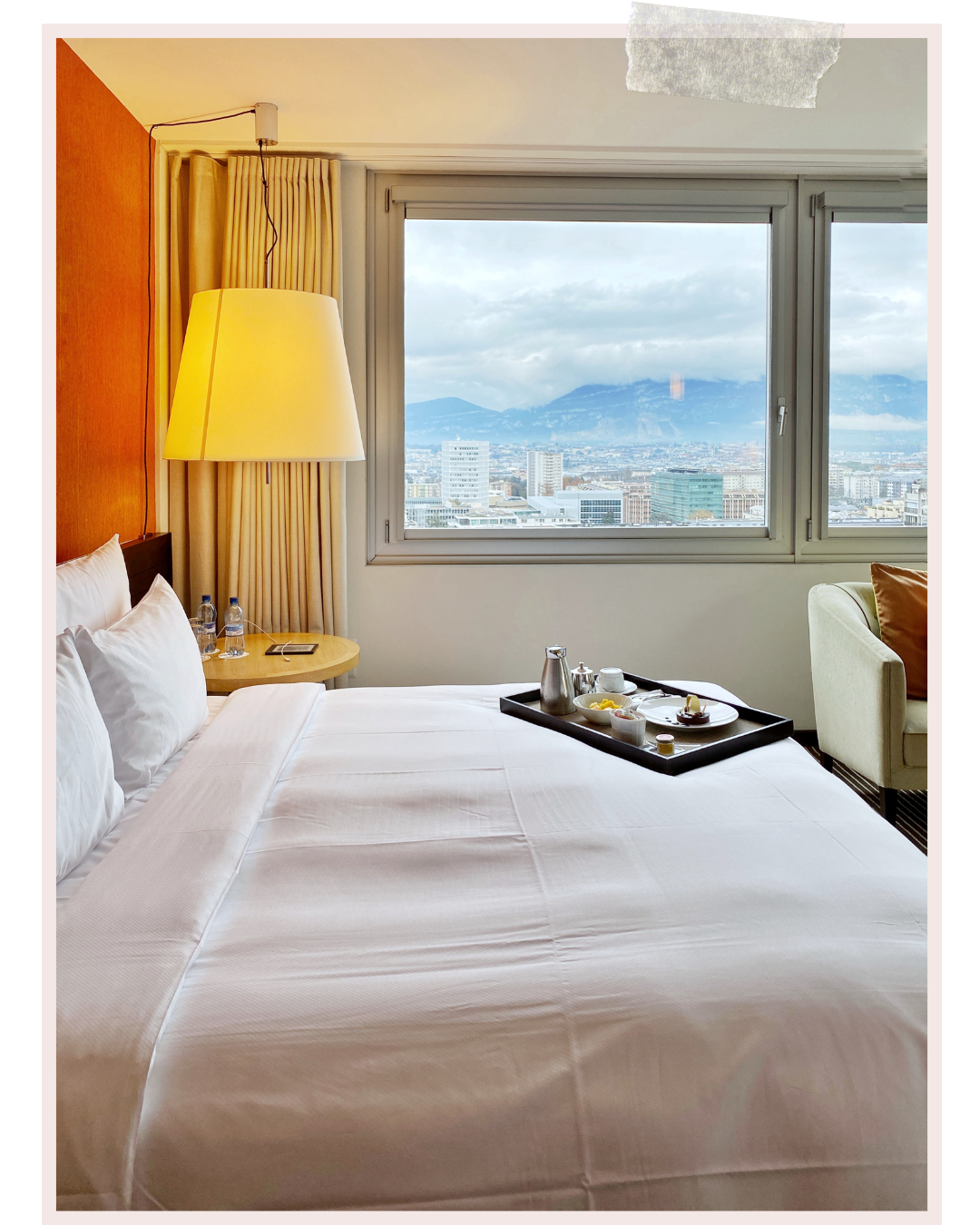 J’ai séjourné à l’Intercontinental du mercredi soir au vendredi en fin de journée. J’ai pu bénéficier d’une upgrade en Suite car l’hôtel n’était pas complet, j’ai donc eu la joie d’avoir une grande chambre en angle avec une superbe vue sur Genève et le Salève.