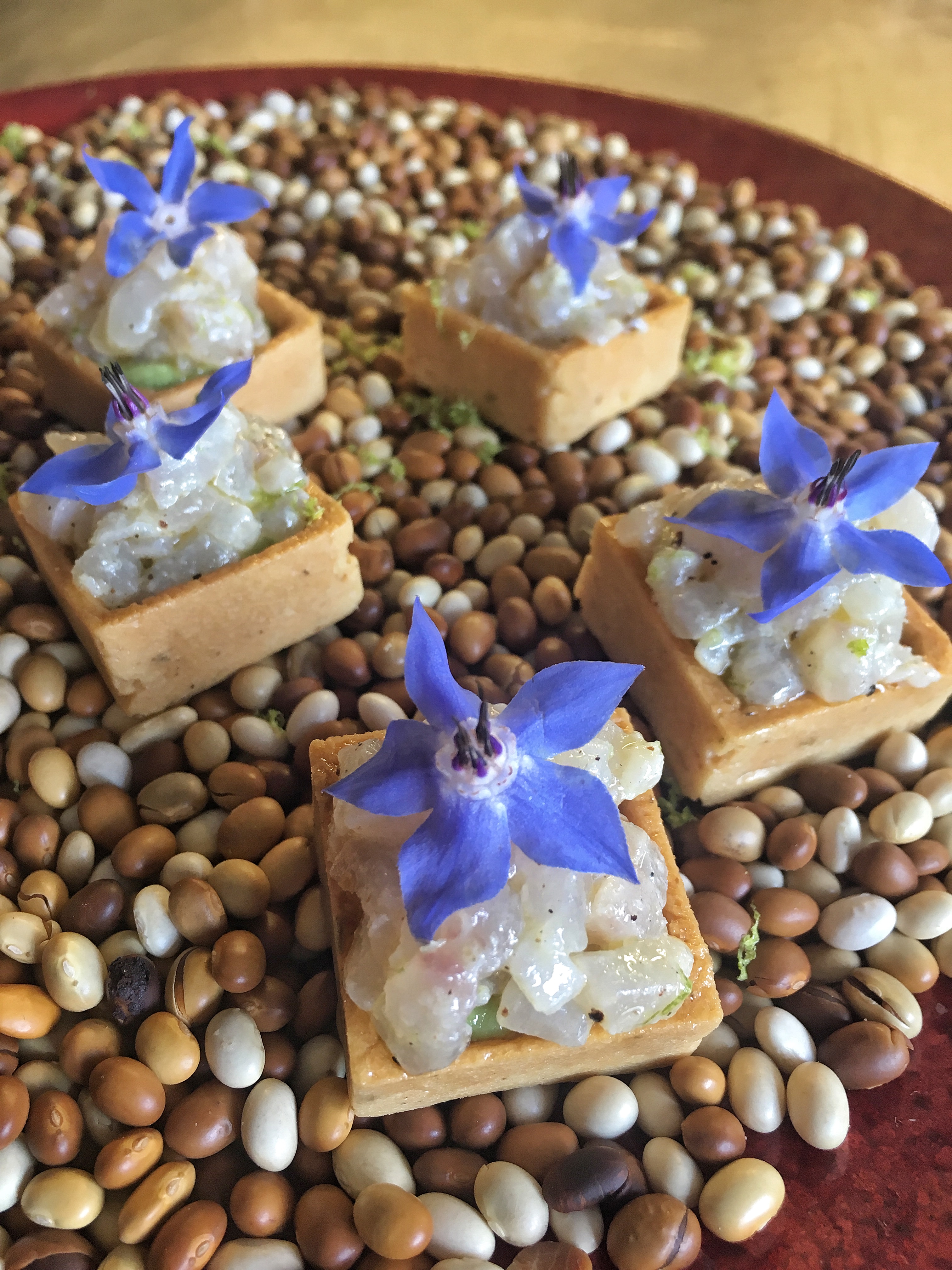 Malgré la renommée du chef, la vedette de la soirée était en fait… LA PERCHE! Le but du repas étant d’en apprendre davantage sur ce poisson bien de chez nous. Présente dans chaque plat du menu, le dénommé « Jamie Oliver suisse » a su, avec brio, la sublimer et l’associer de la plus surprenante des manières.