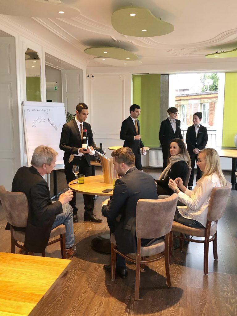 Nous avons poursuivi cet fin d’après-midi par une dégustation de vin avec deux professionnels en la matière, Reza Nahaboo, Meilleur Sommelier de Suisse 2016 et Fabien Mène, 3ème finaliste du concours du Meilleur Sommelier de Suisse 2016.
