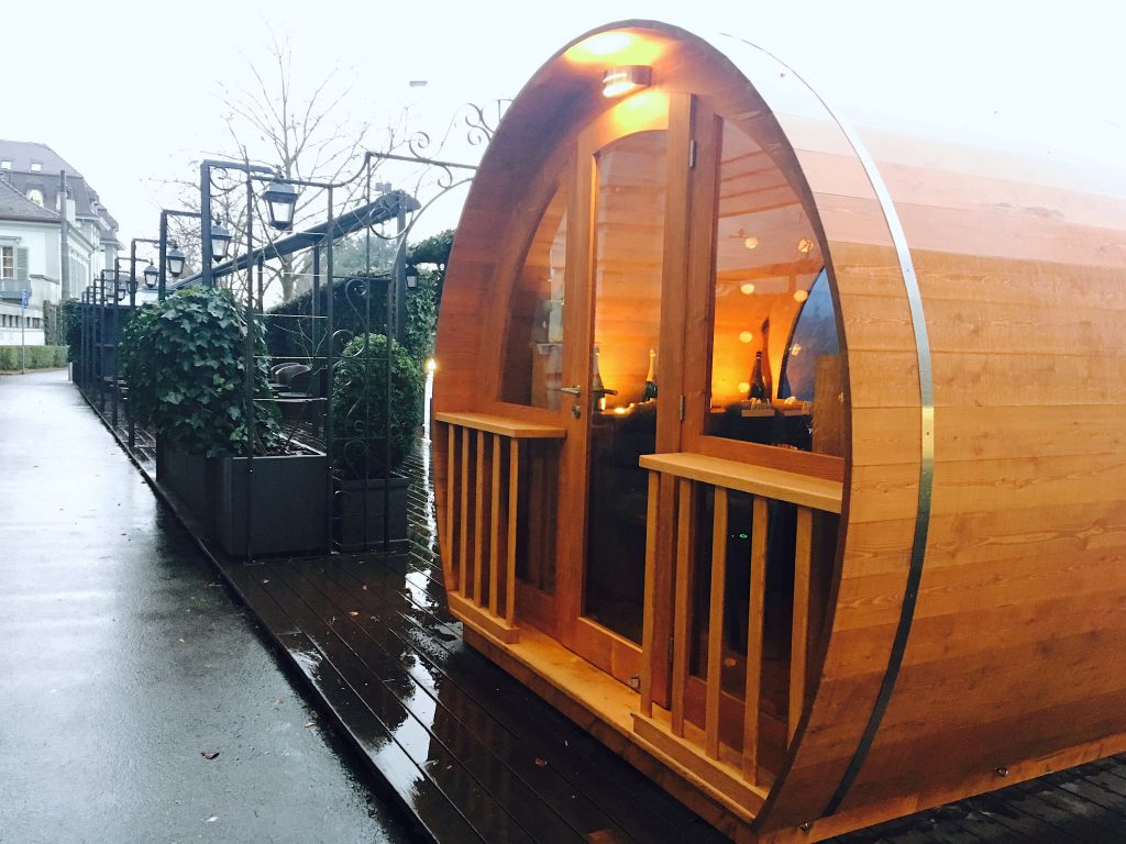 Cette bulle de bois, située entre la rue principale et l’hôtel peut accueillir jusqu’à 4 convives dans un cadre cosy et chaleureux.