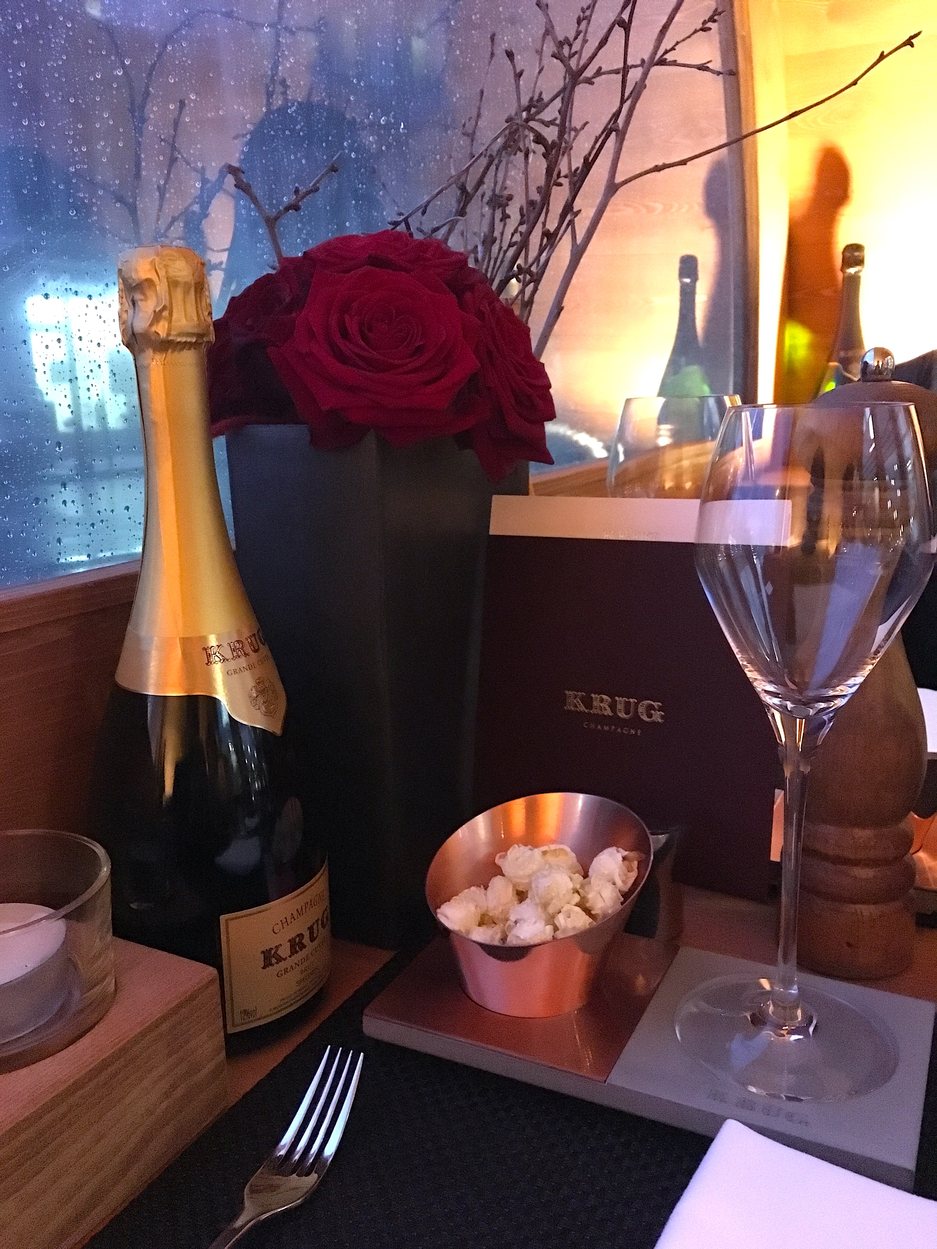 Une fois à l’intérieur, 3 formules y sont proposées, toutes accompagnées d’une bouteille de Krug: