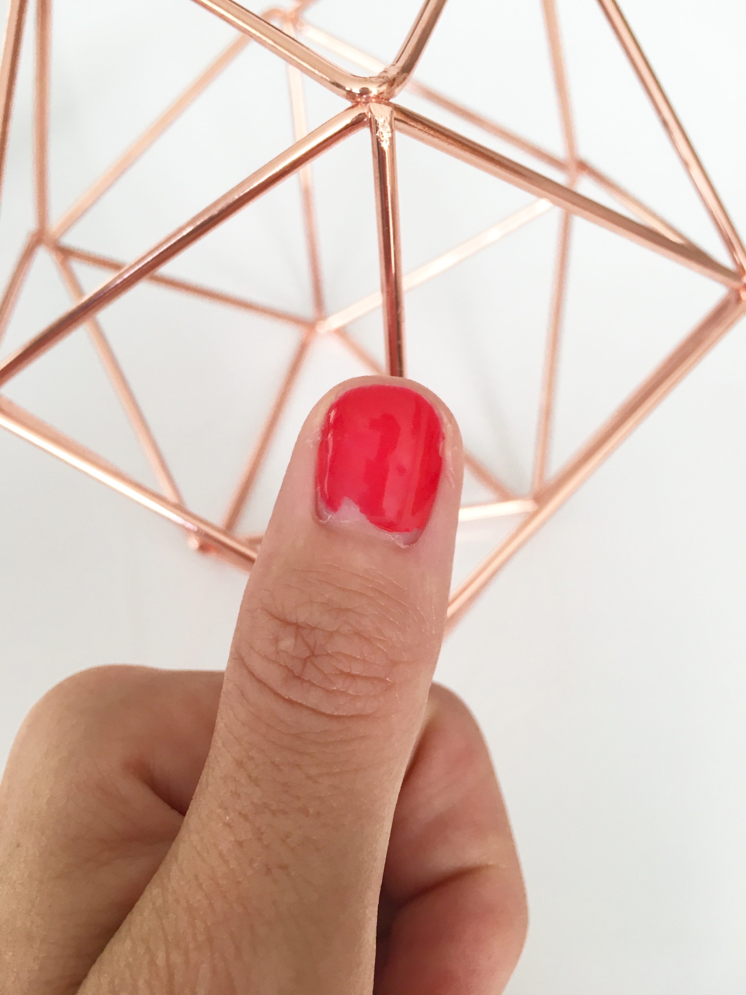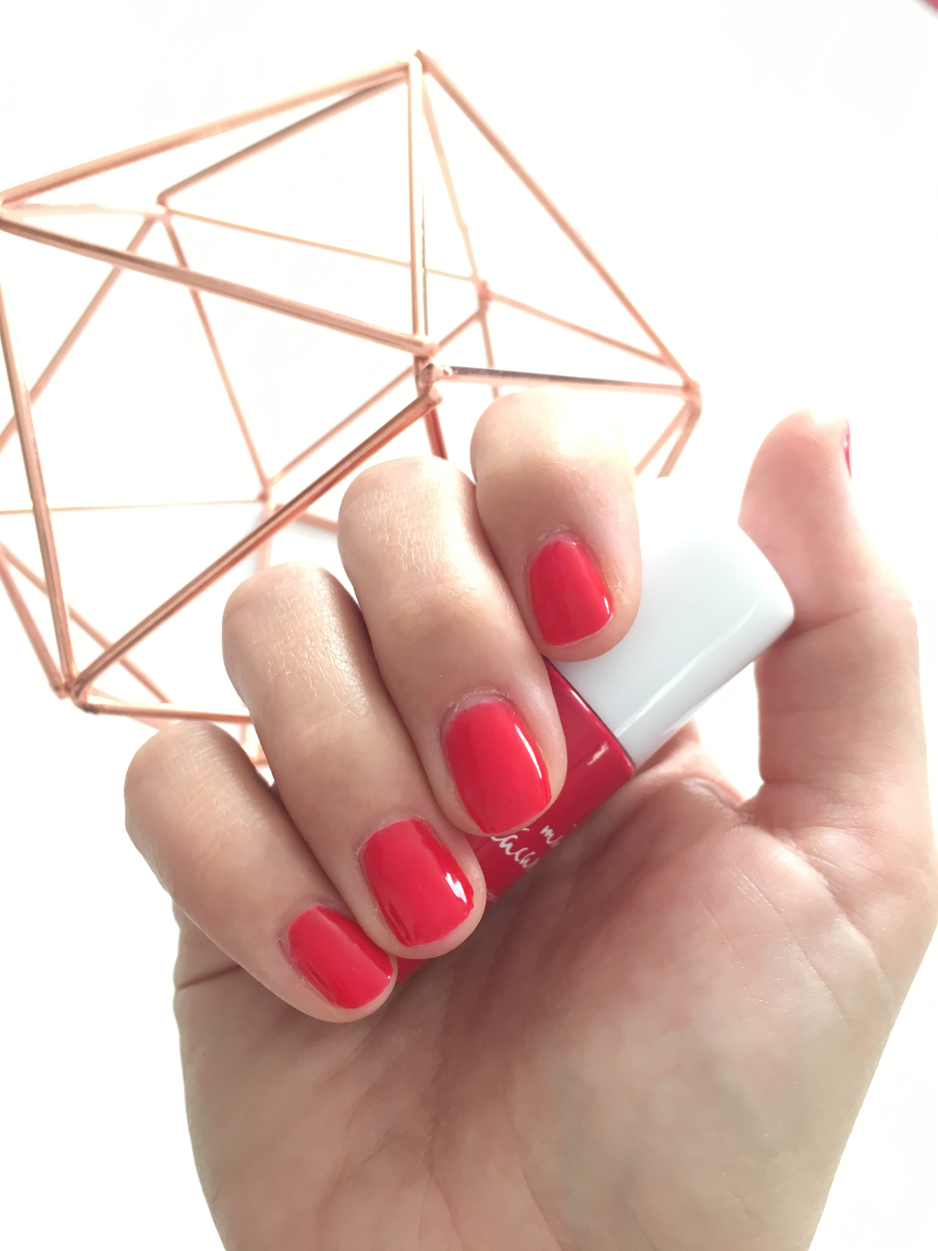 Adepte du gel depuis des années, j’ai récemment arrêté complètement, nouveau mode de vie oblige! N’ayant pas beaucoup temps à consacrer à la pose de vernis, ni de patience pour l’étape du séchage, j’ai voulu tester ce petit bijou prometteur.