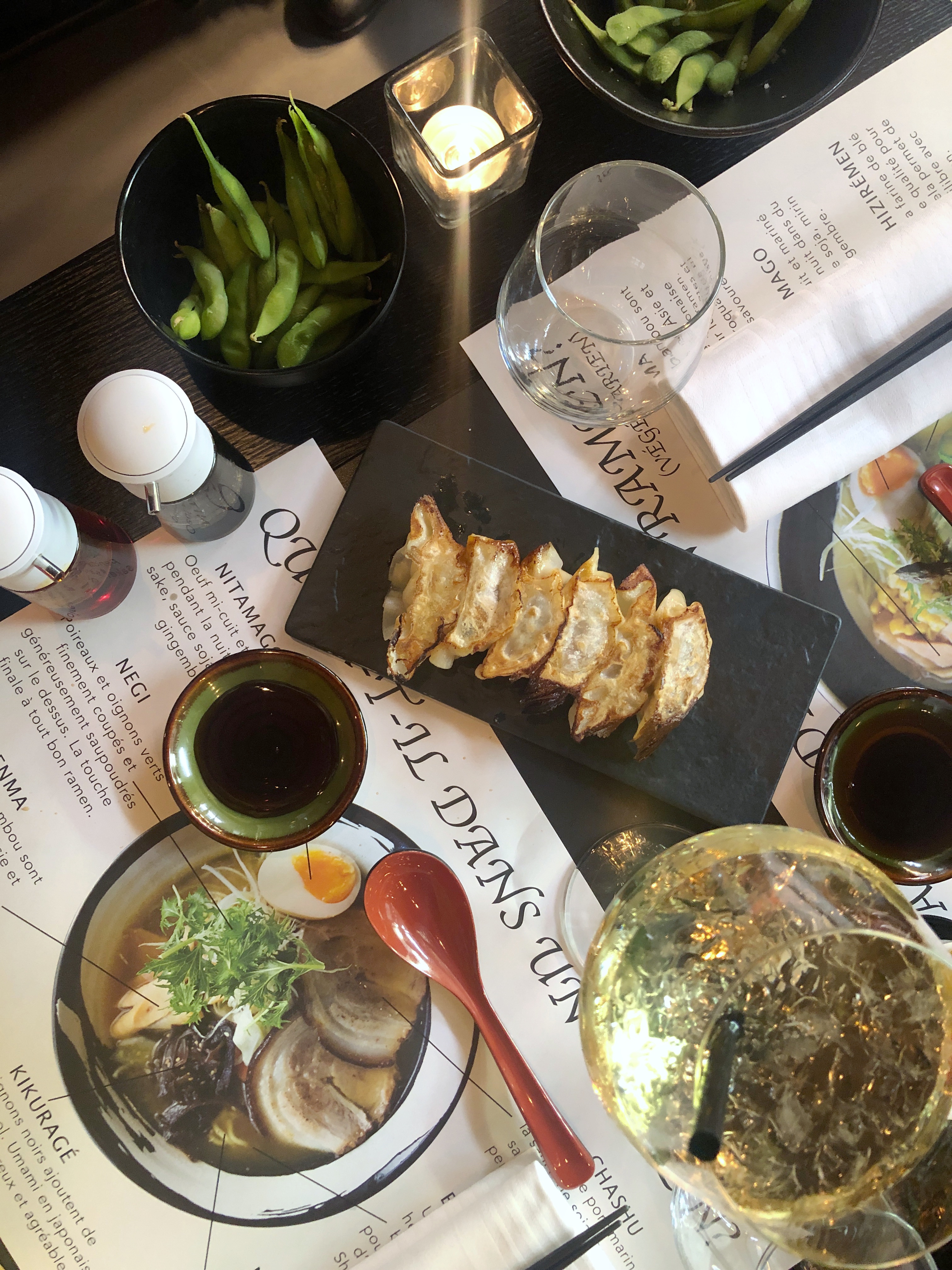 En entrée, j’ai opté pour des gyozas (raviolis fris aux légumes ou à la viande) et edamamés, un délice!