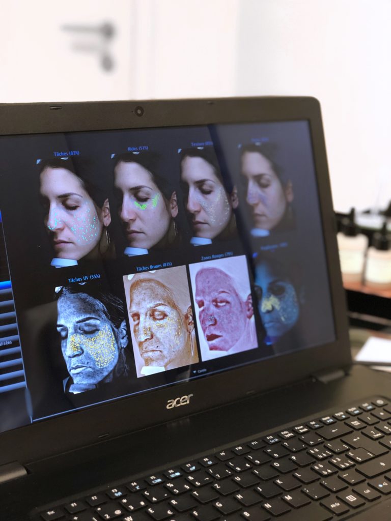 Le skinscope (le gros appareil noir et blanc) m’a fasciné car il peut lire notre peau dans ses moindres détails. C’était très intéressant de me familiariser avec les spécificités de ma peau en images et comprendre son fonctionnement.