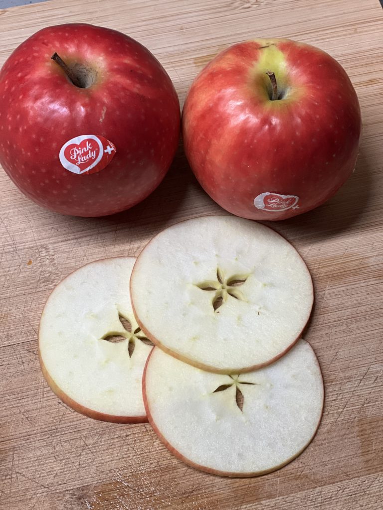 - Lavez les pommes Pink Lady et essuyez-les soigneusement.