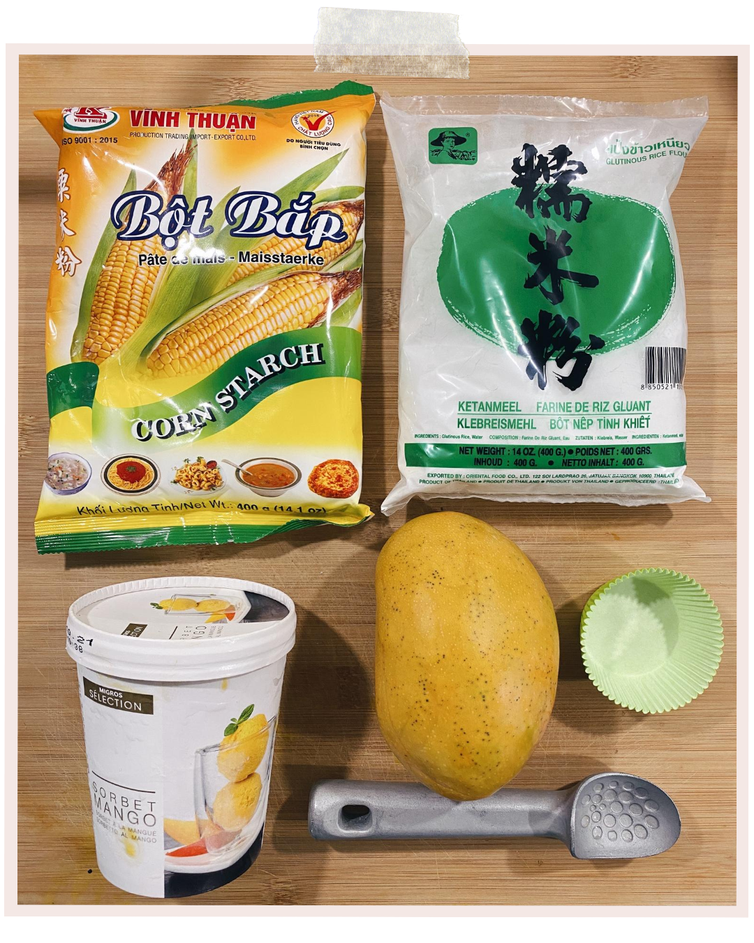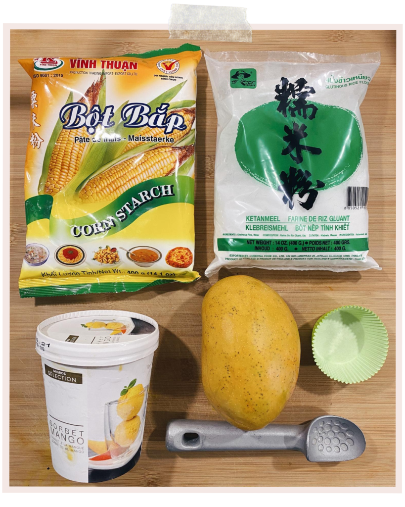 - glace à l’arôme de votre choix (j’ai choisi mangue et coco)