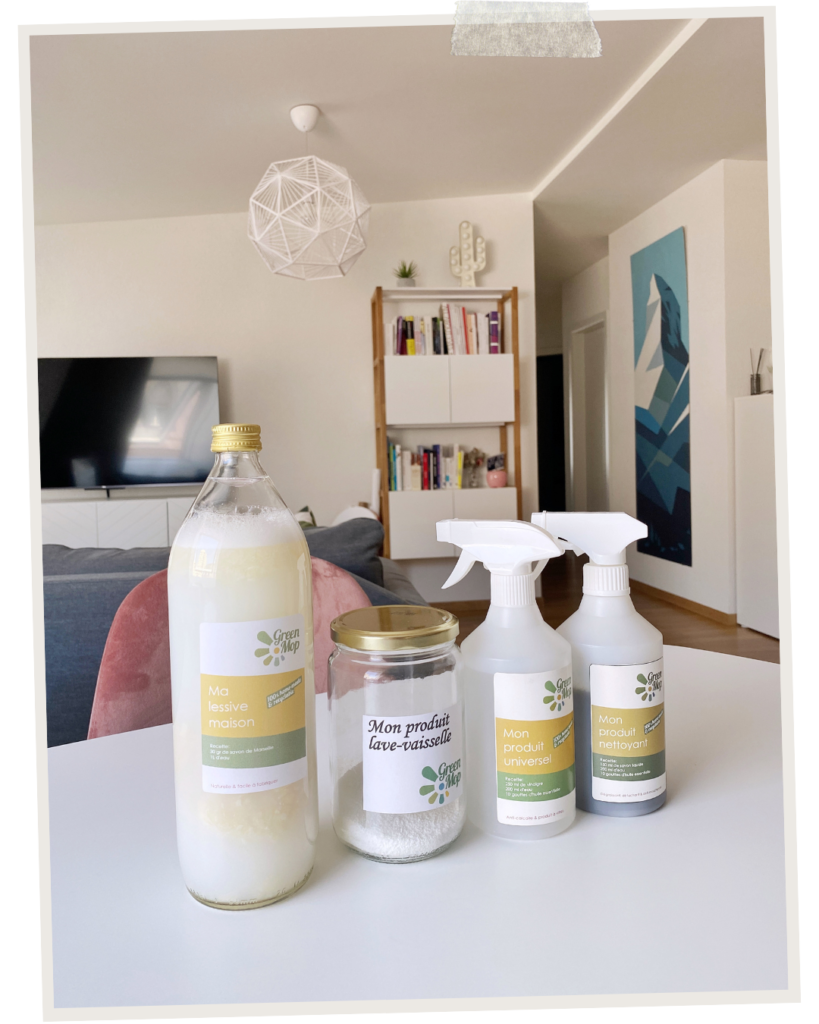 Bien que nous ne fassions pas nous-même le ménage à la maison, il en va de la santé de tous d’utiliser des produits respectueux et écologiques. J’ai donc de ce pas mis mes nouveaux produits maison à la disposition de ma femme de ménage qui les a adopté tout de suite!