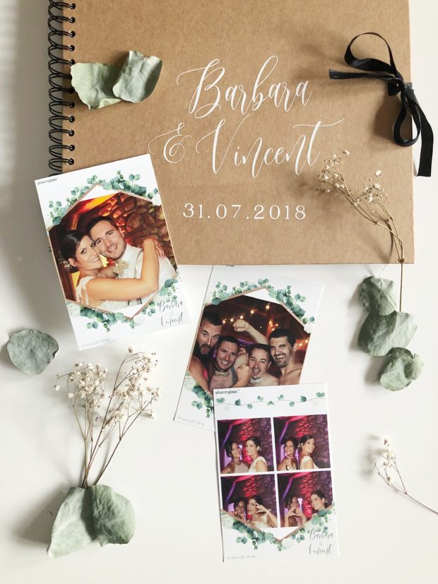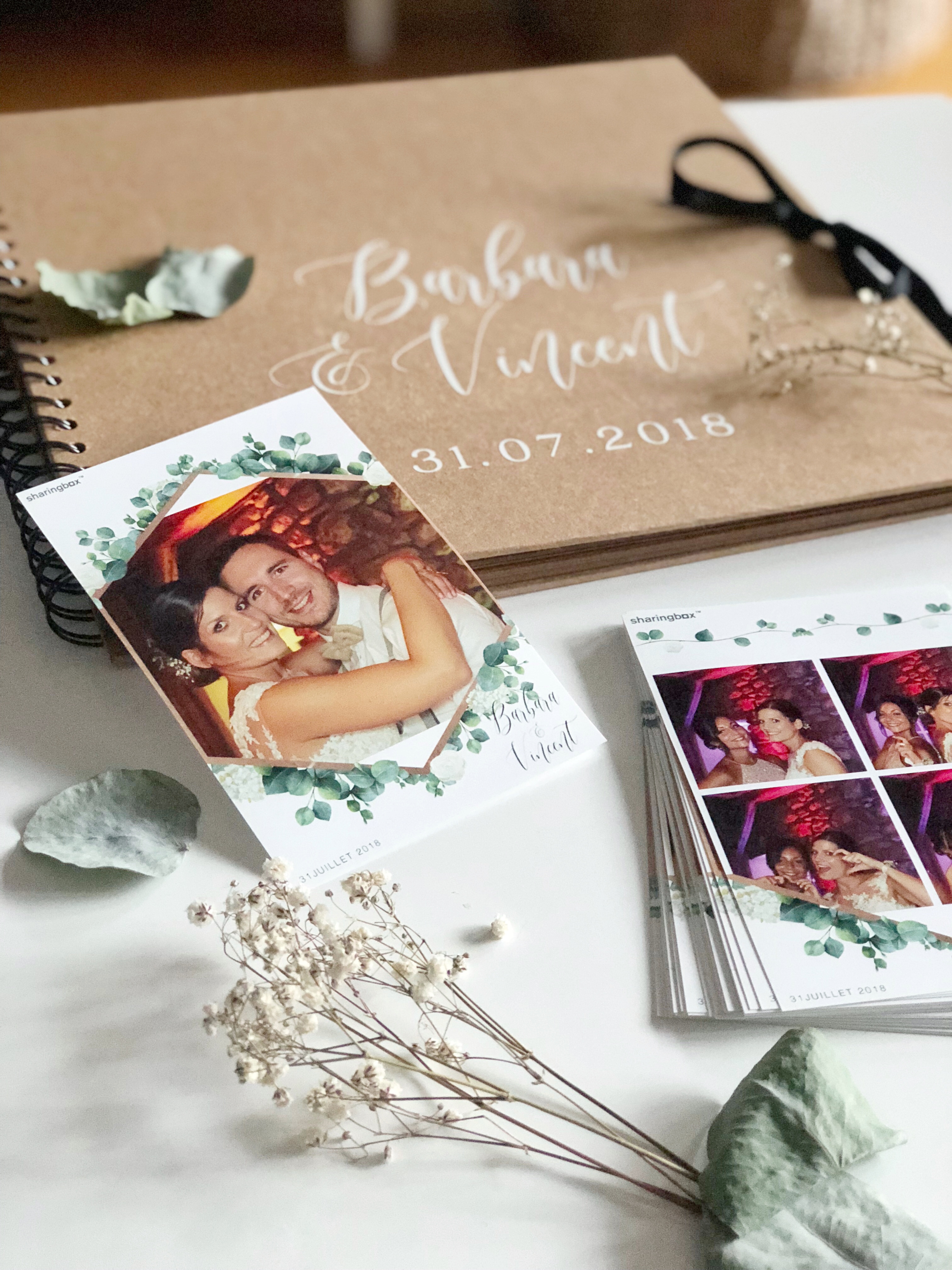 Ce qui m’importait était d’avoir un visuel personnalisé pour notre jour si particulier. Ils ont des modèles prédéfinis pour toutes sortes d’occasion. Pour notre mariage, nous avons pu adapté le design des photos pour qu’il ressemble à notre faire-part et à notre thème champêtre végétal. L’équipe de Sharingbox a très vite compris ce que nous désirions et il a fallu qu’un échange de mails pour avoir le résultat escompté.
