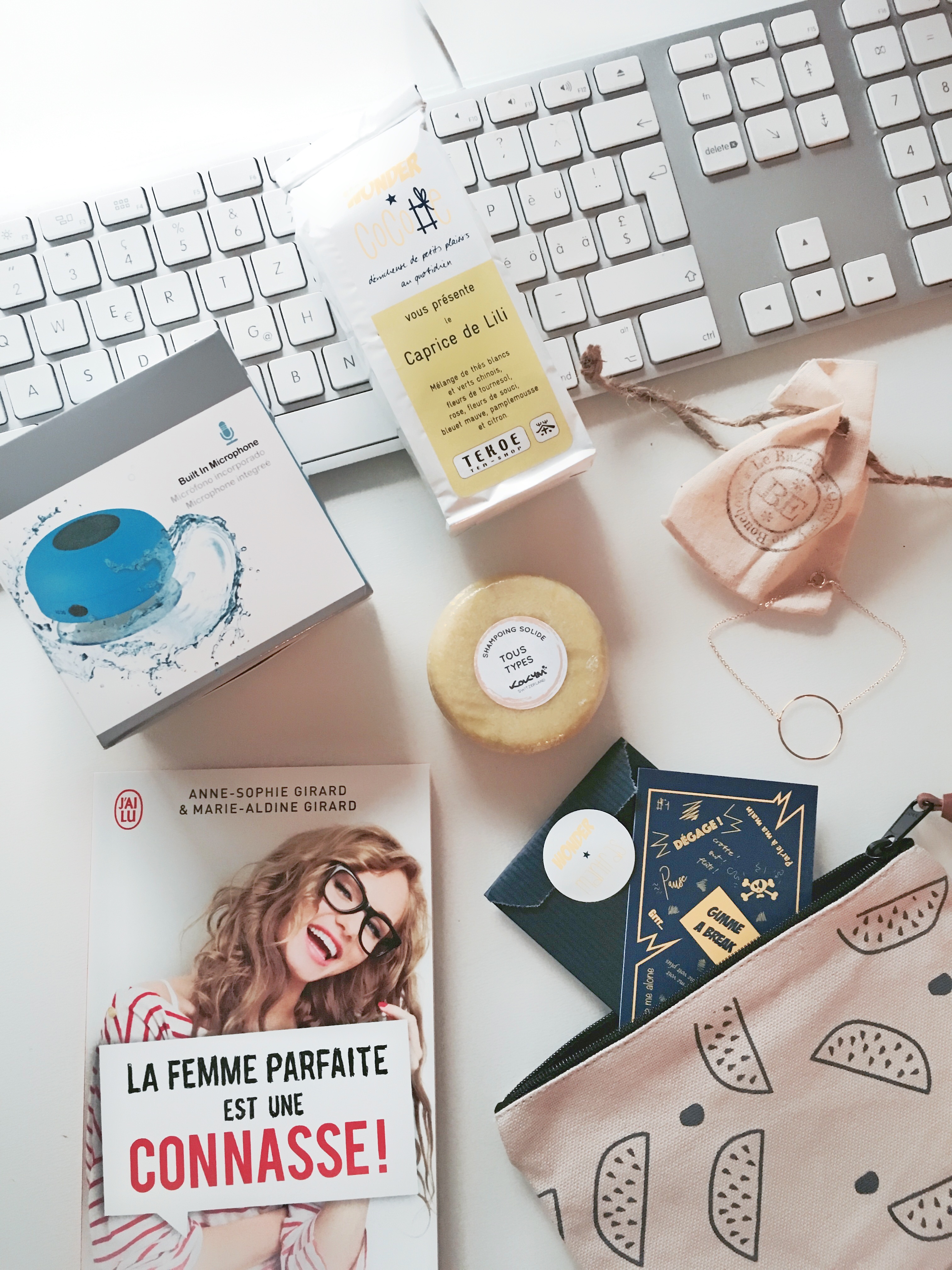 Le petit livre « La femme parfaite est une connasse » me met un peu mal à l’aise… non pas que je sois coinçée mais simplement parce que ça fait déjà deux ans qu’il prend la poussière dans ma bibliothèque et que pour une première box qui se dit « novatrice » je trouve ce choix plutôt moyen.
