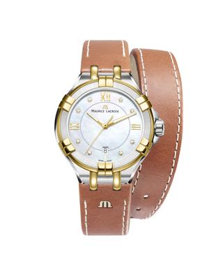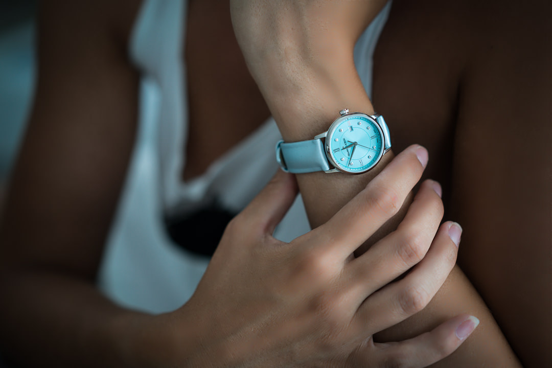 Cette saison, c’est deux jolis modèles de Maurice Lacroix que j’ai la chance de porter. Toutes deux aux couleurs estivales qui sont très simples à accorder avec mes tenues.
